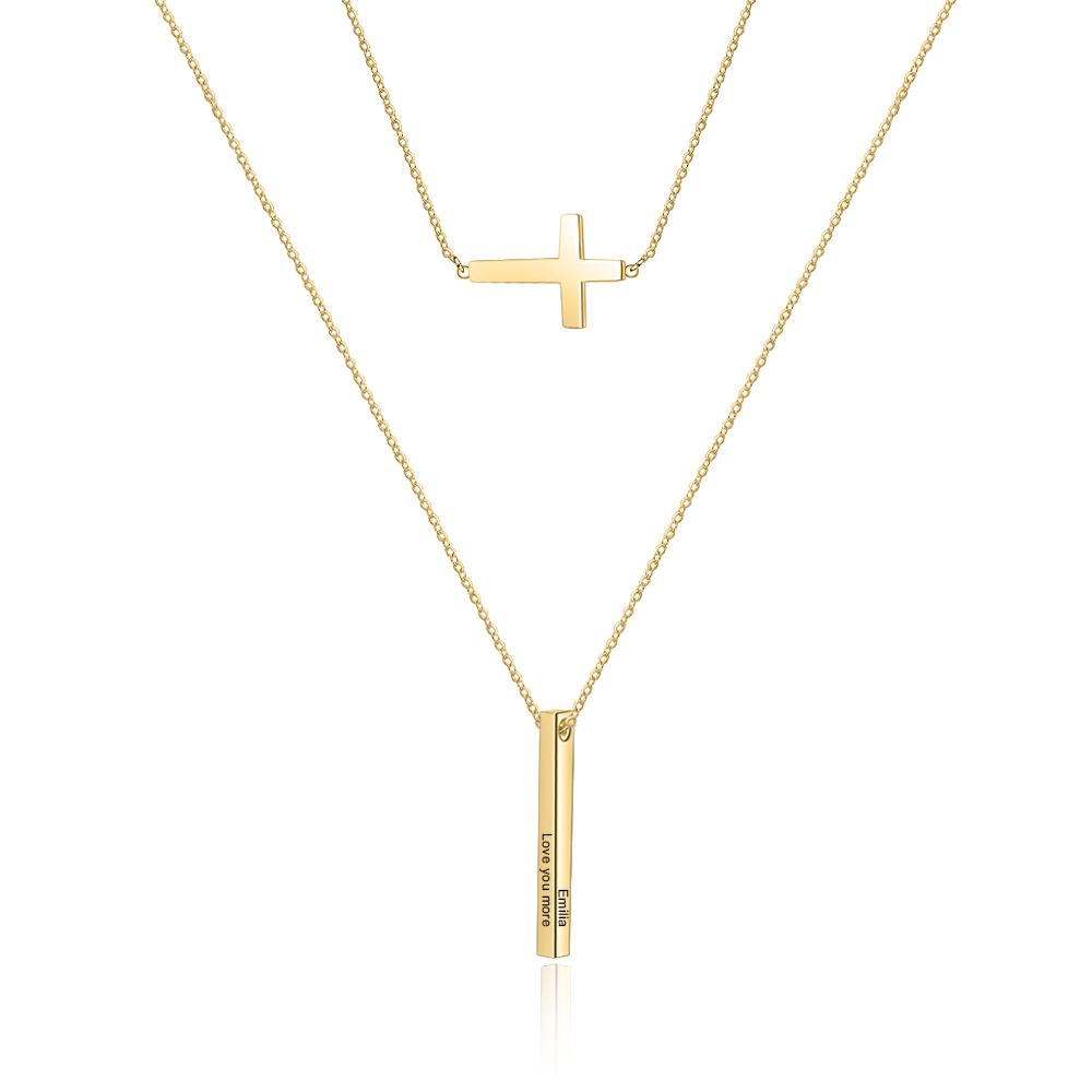 Personalized 3D Bar Necklace 4 Sides Vertical Bar Necklace For Him