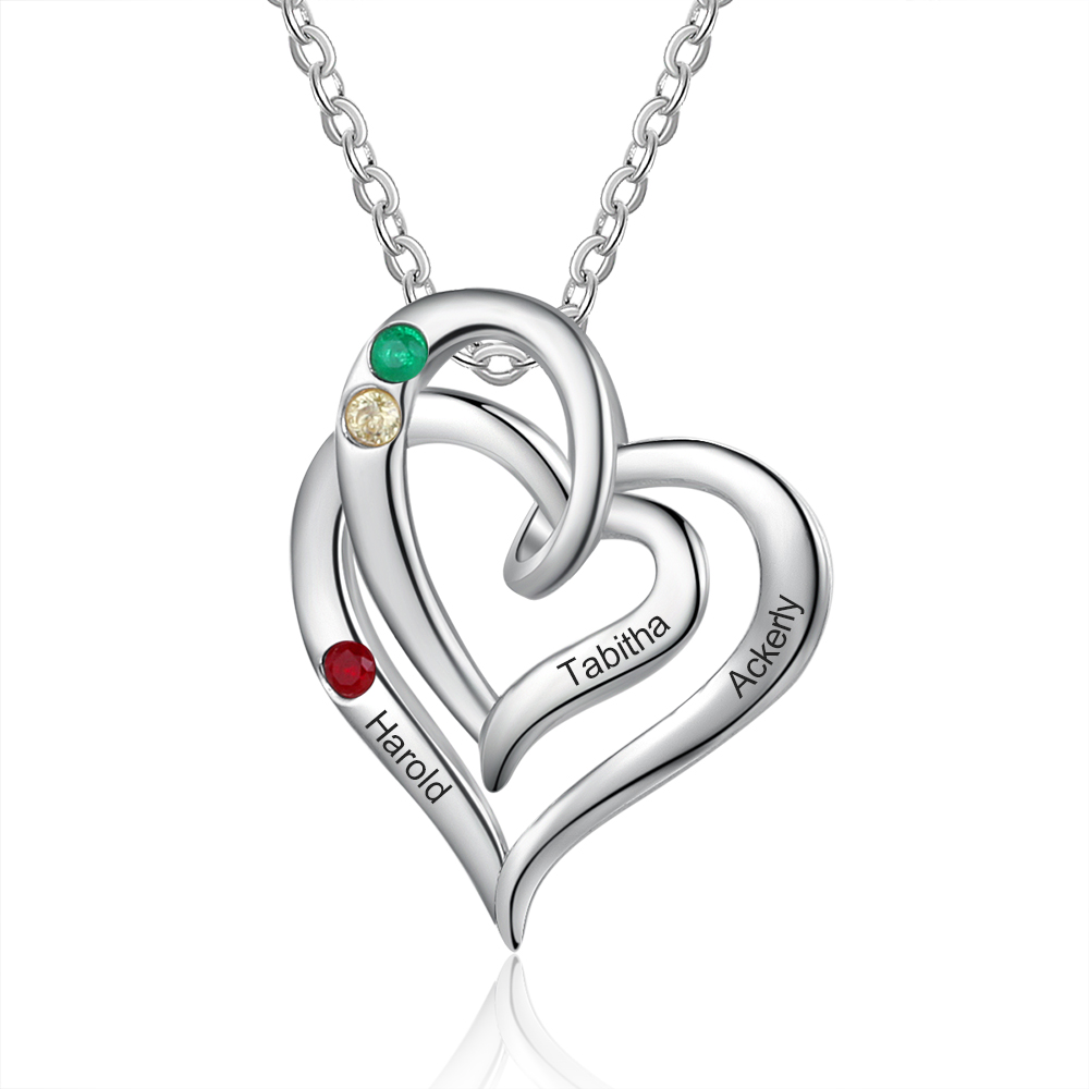 Personalized Heart Necklace With 1 Birthstone Engraved Names Gift For Women