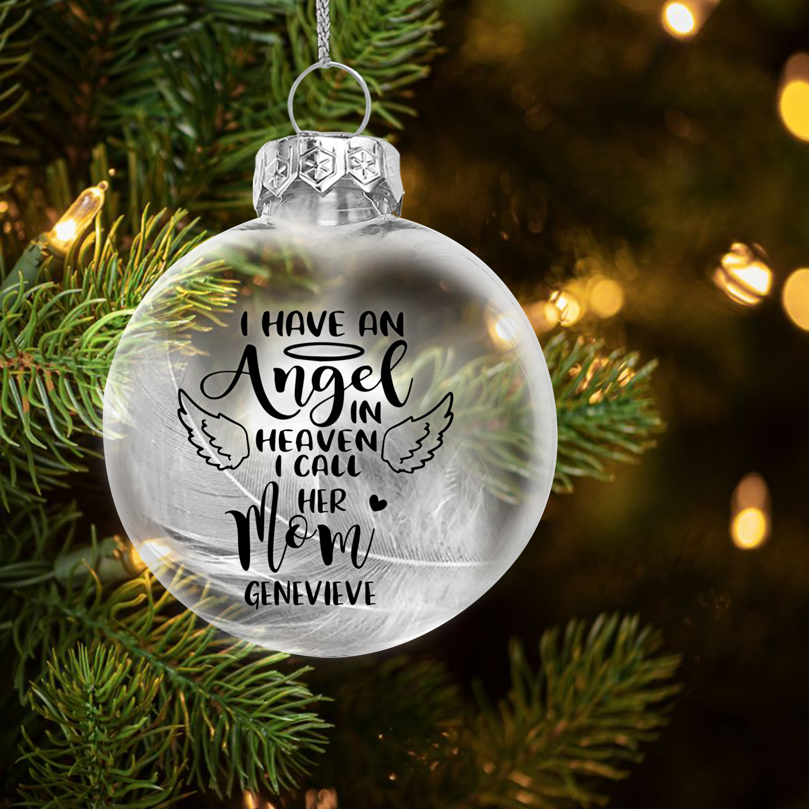 Personalized Mom Feather Ball Memorial Ornament Custom Name Christmas Ornament - I Have An Angel In Heaven