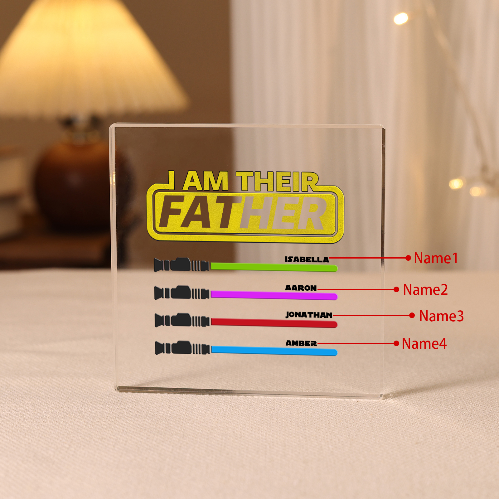 4 Names - Personalized Fist Acrylic Keepsake Custom Text Acrylic Plaque Ornament Gift for Dad