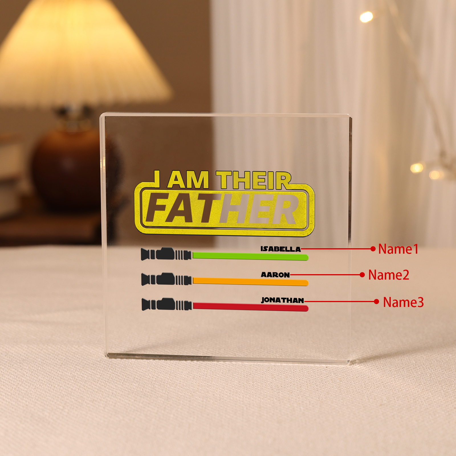 3 Names - Personalized Fist Acrylic Keepsake Custom Text Acrylic Plaque Ornament Gift for Dad