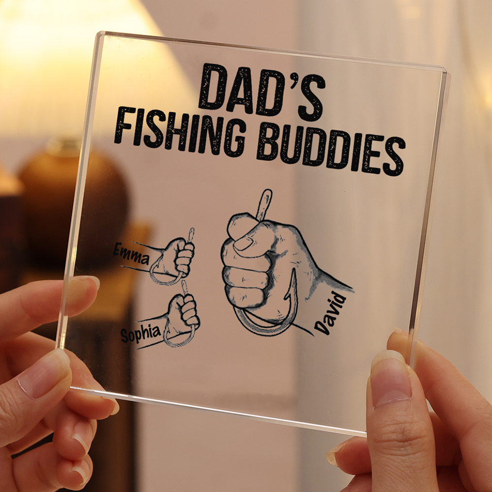 8 Names - Personalized Fishhook Fist Bump Pattern Family Acrylic Keepsake Customized Name Acrylic Home Decor Gift for Dad
