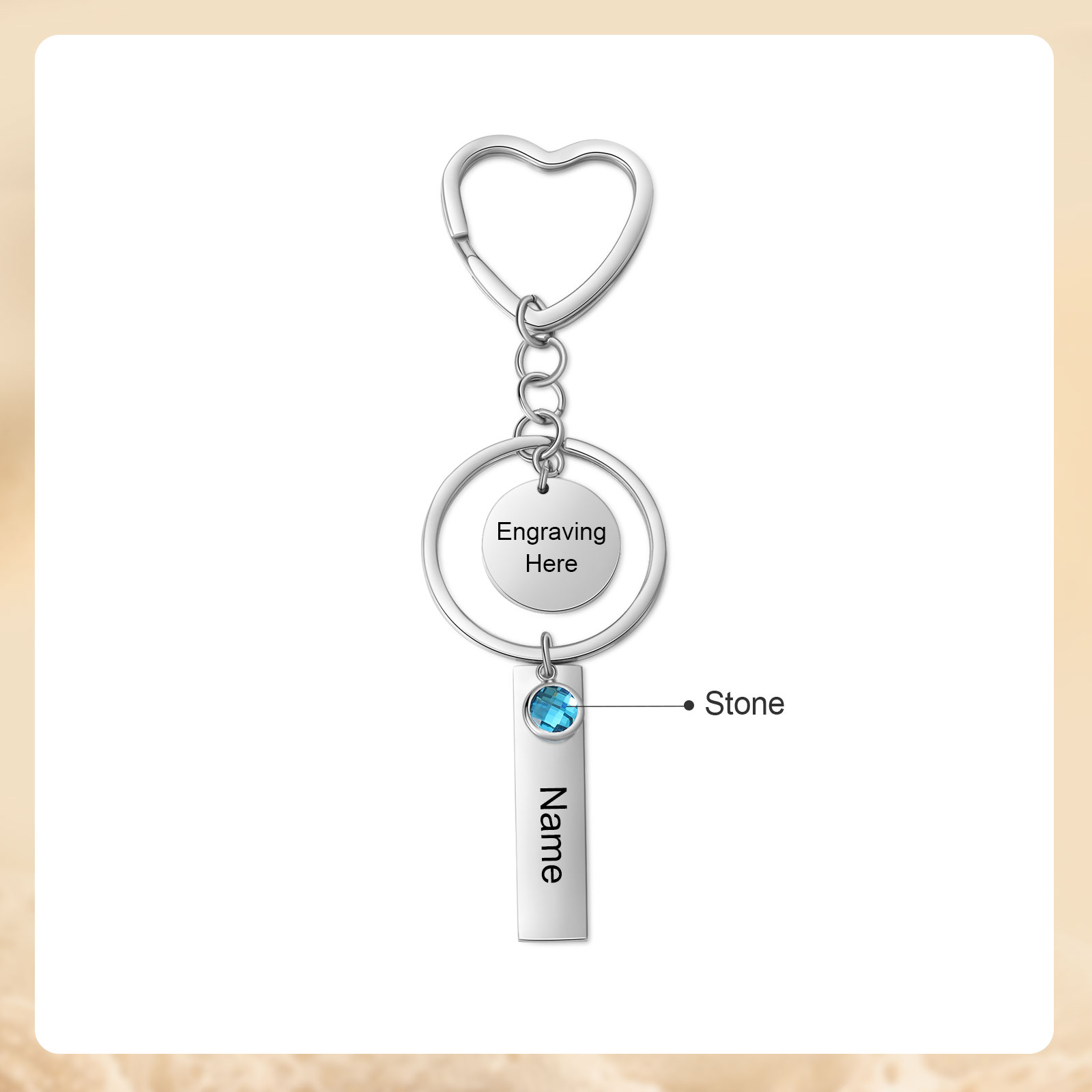 1 Name - Personalized Birthstone Love Pendant Design Keychain Hook Engraving Special Gift for Mom