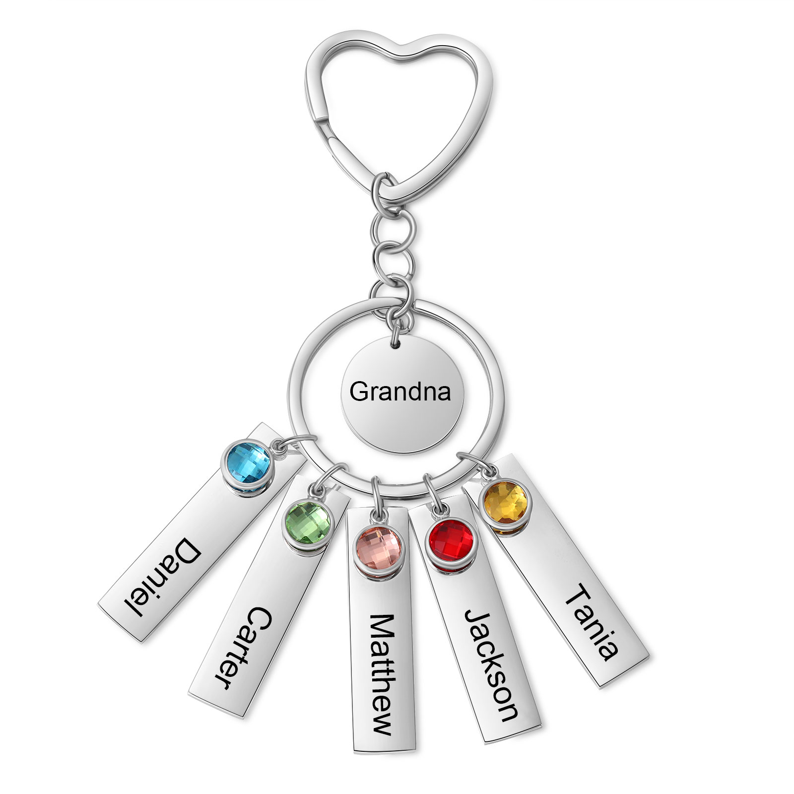5 Names - Personalized Birthstone Love Pendant Design Keychain Hook Engraving Special Gift for Mom