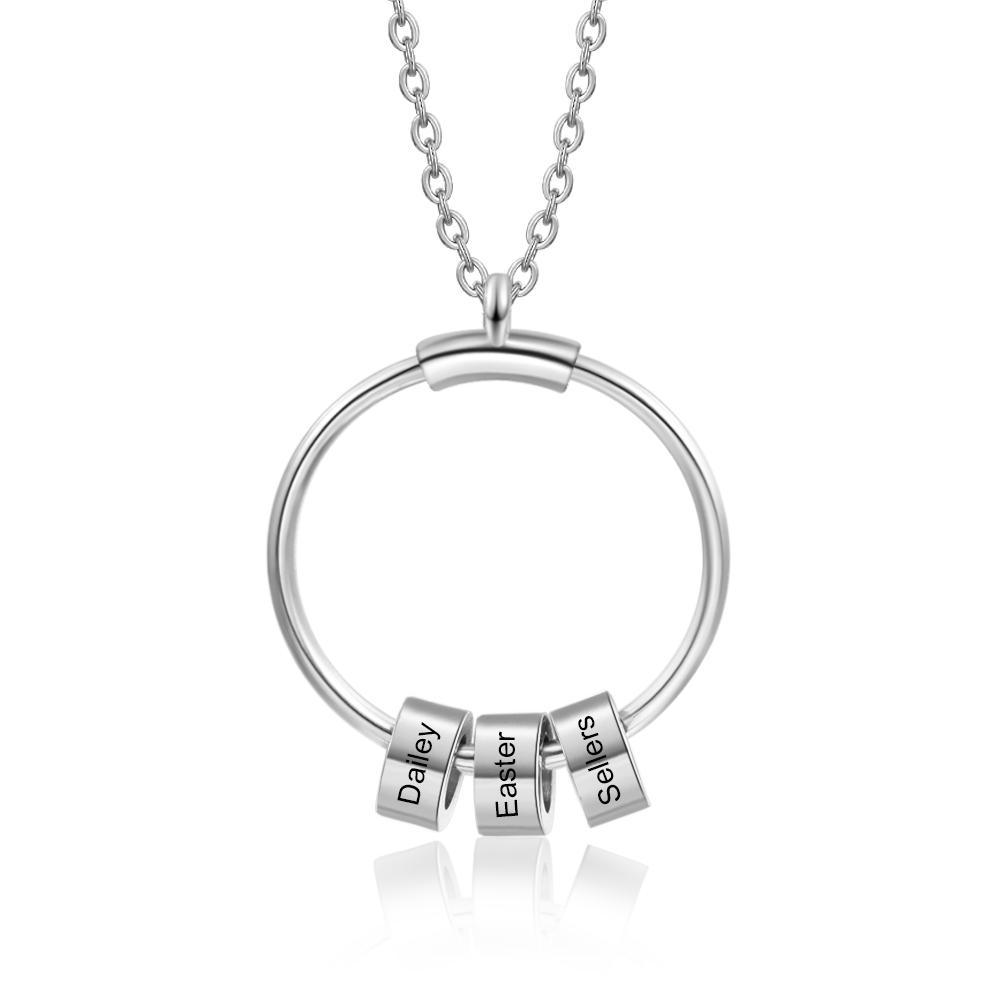 Personalized Circle Pendant Necklace With Beads Engraved 3 Names Gifts for Her