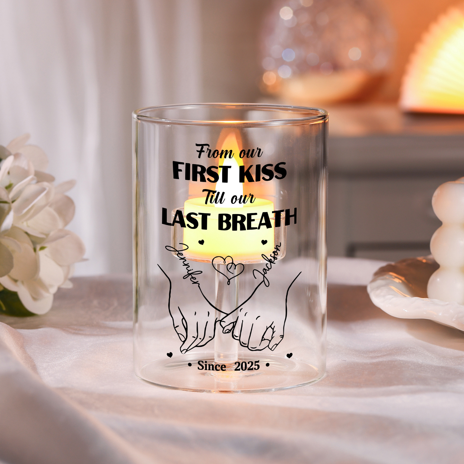 Personalized Glass Candle Holder without candle - From our first kiss to our last breath