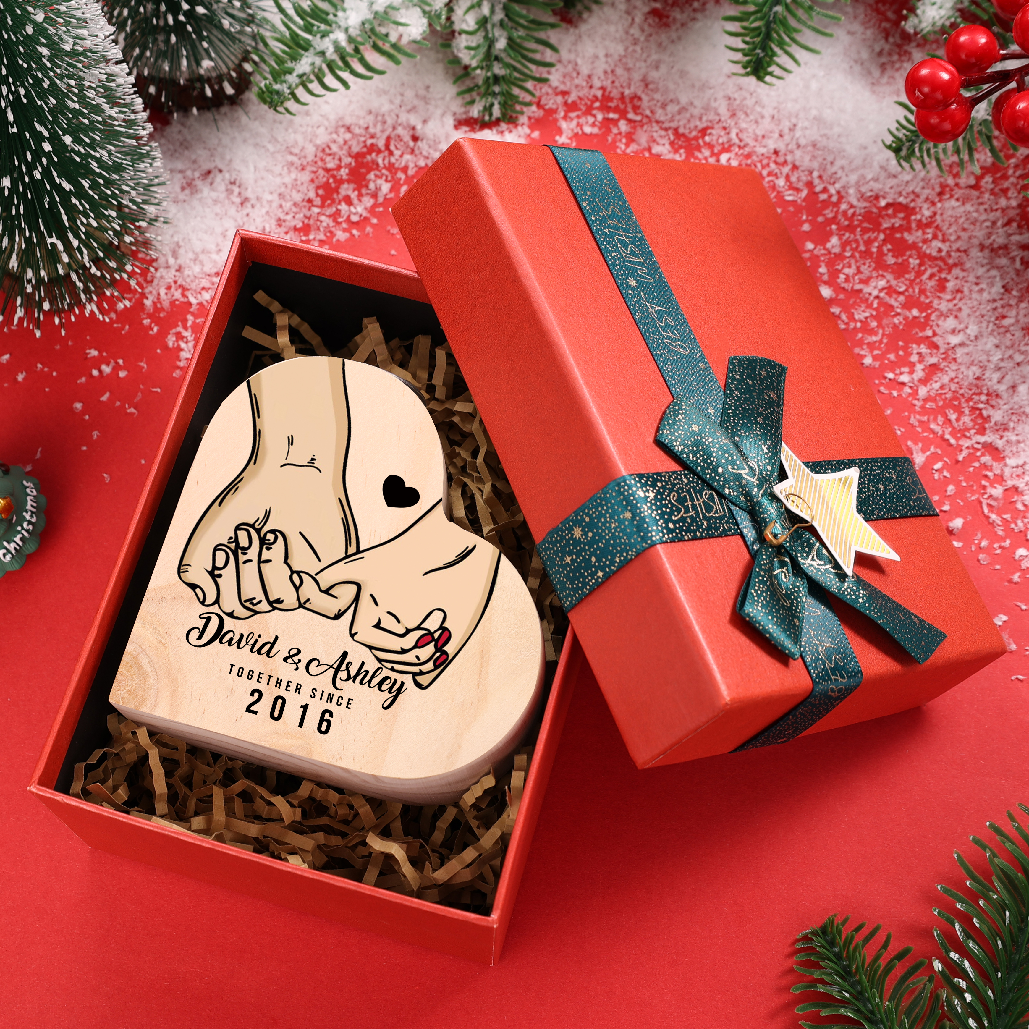 Christmas Family Candle Holder Wooden Custom 3 Names Heart Candlesticks Gifts For Family