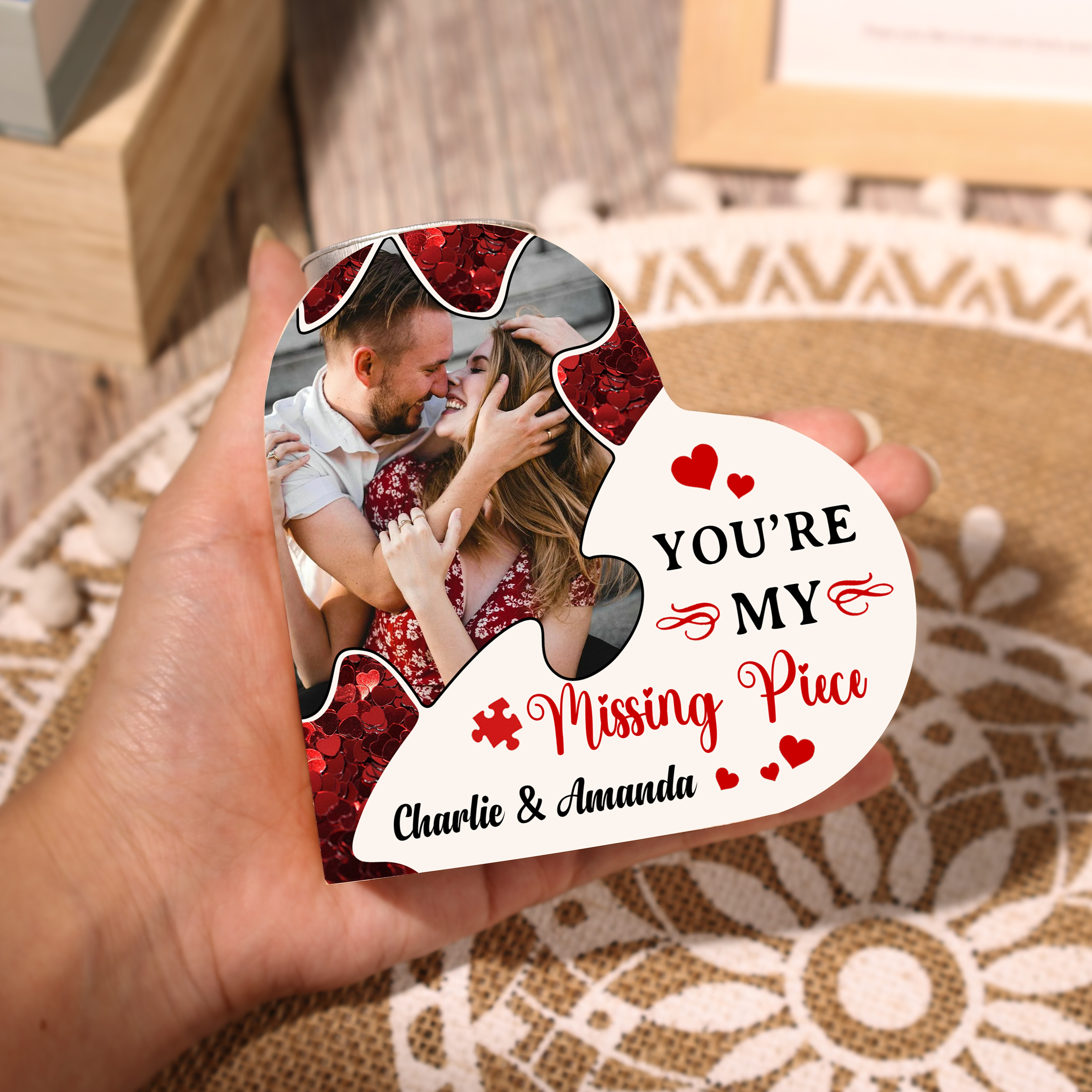 Personalized Love Couple Heart Candle Holder Engrave Photo-You're My Missing Piece-Wooden Candlesticks Valentines Gift