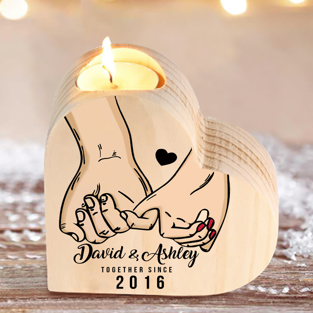2 Names-Personalized Couple Heart Candle Holder Custom Text And Date Engrave Anniversary Wooden Candlesticks Valentines Gift