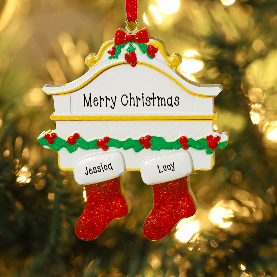 Personalized Family Gift Engraved 2 Names Red Stockings Christmas Ornament For Family