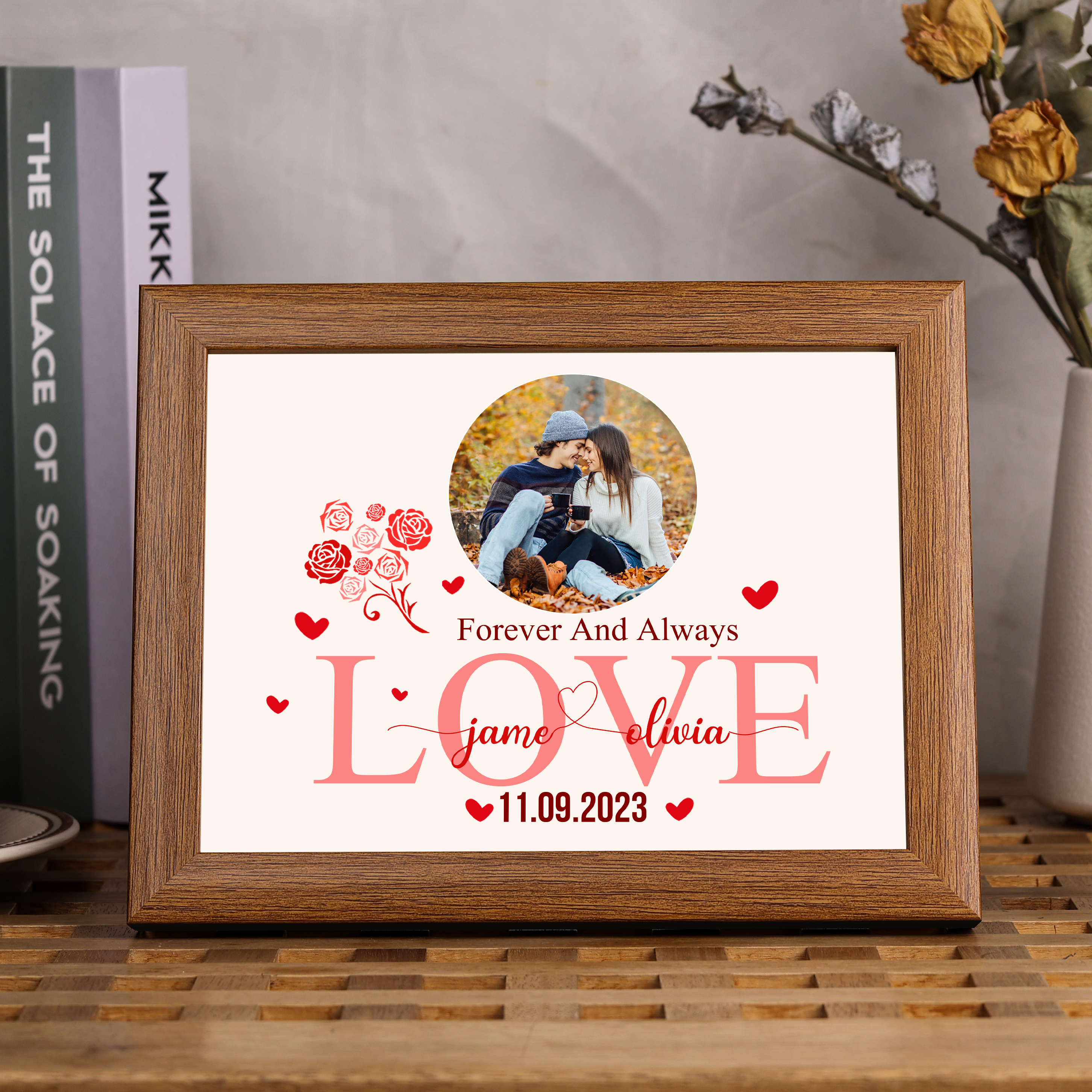Photo-Personalized Couple Frame Custom Names And Date LED Night Light Anniversary Gift For Couple