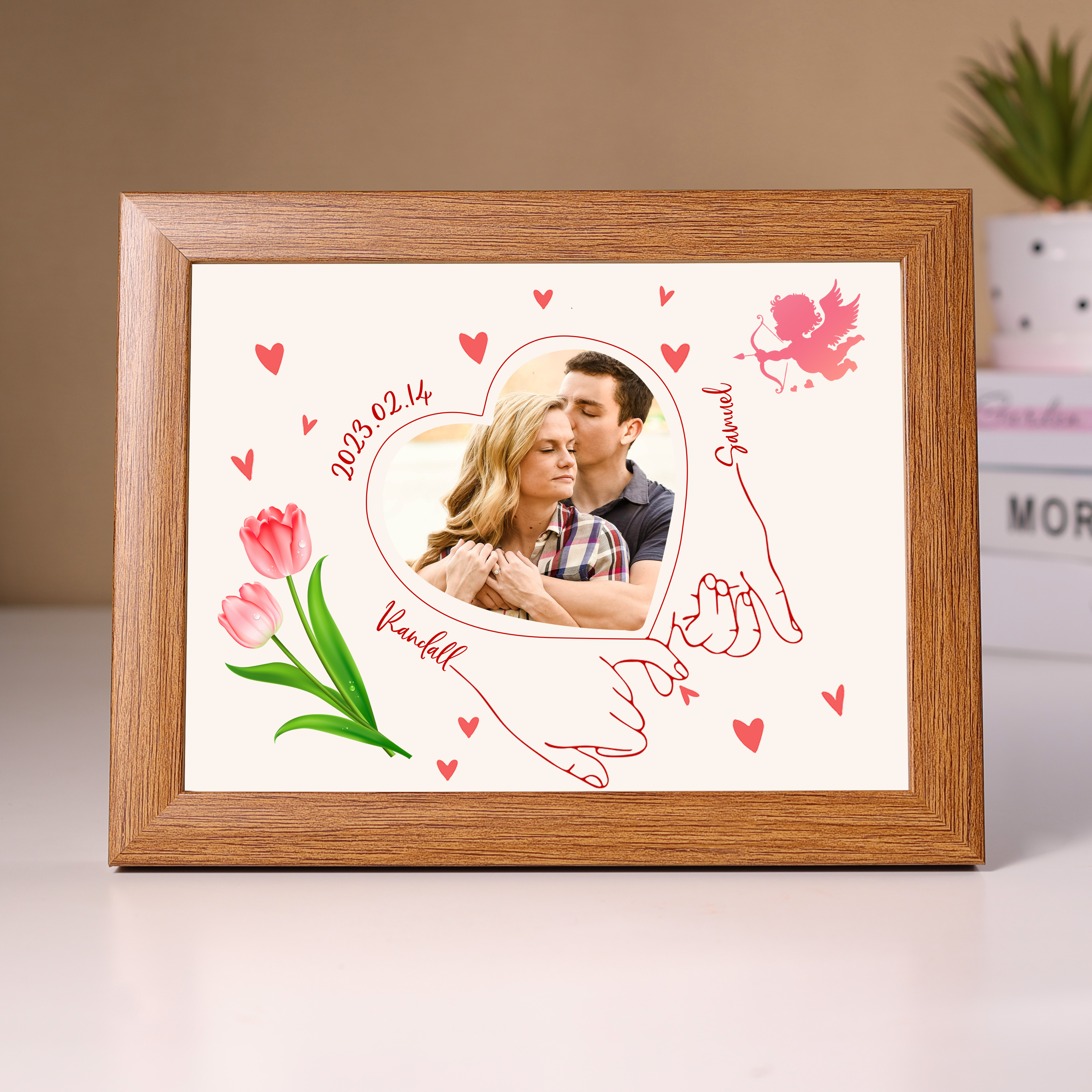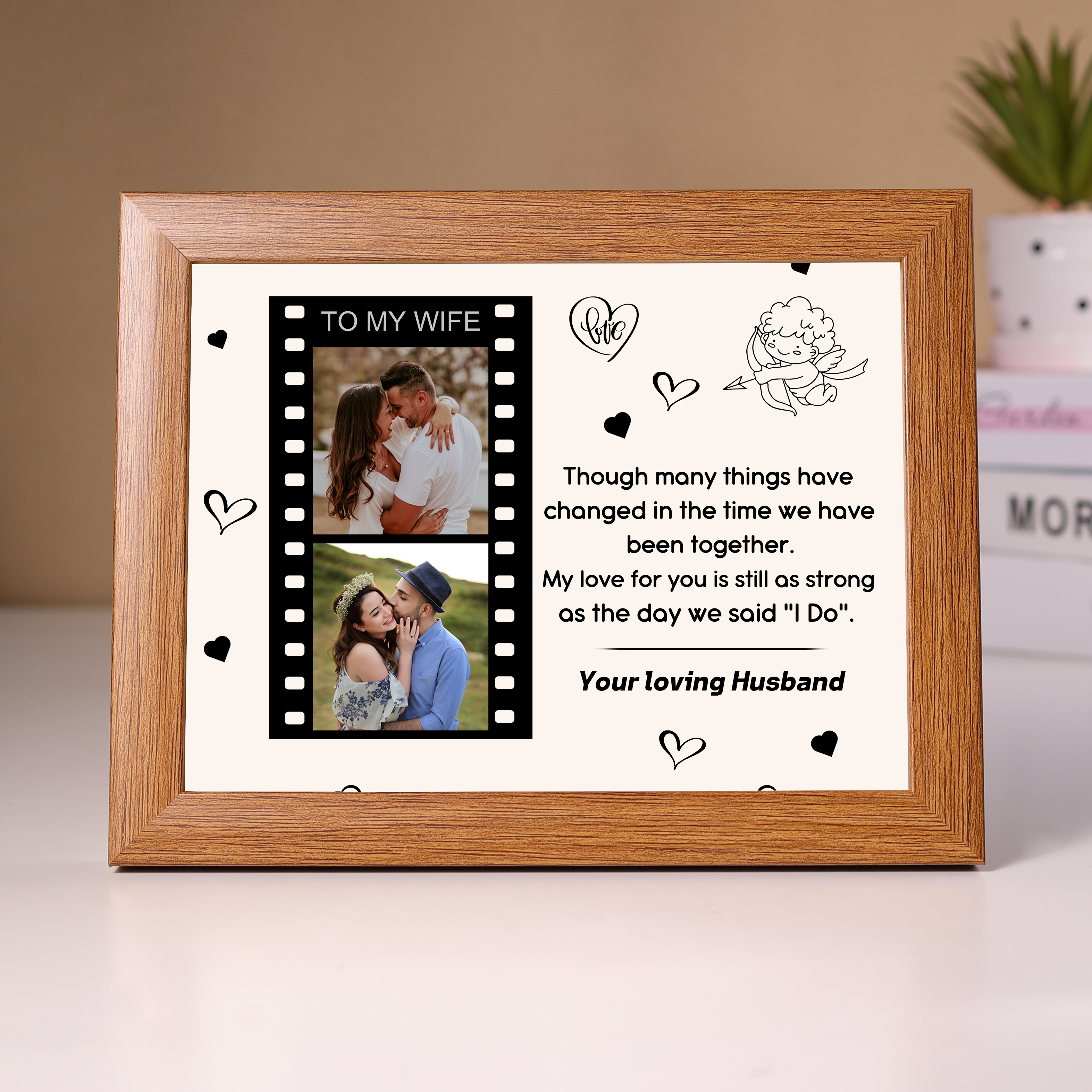 Personalized Couple Wooden Ornament Canvas Gift-Customized Gift Ornament Desktop Decoration Picture Frame