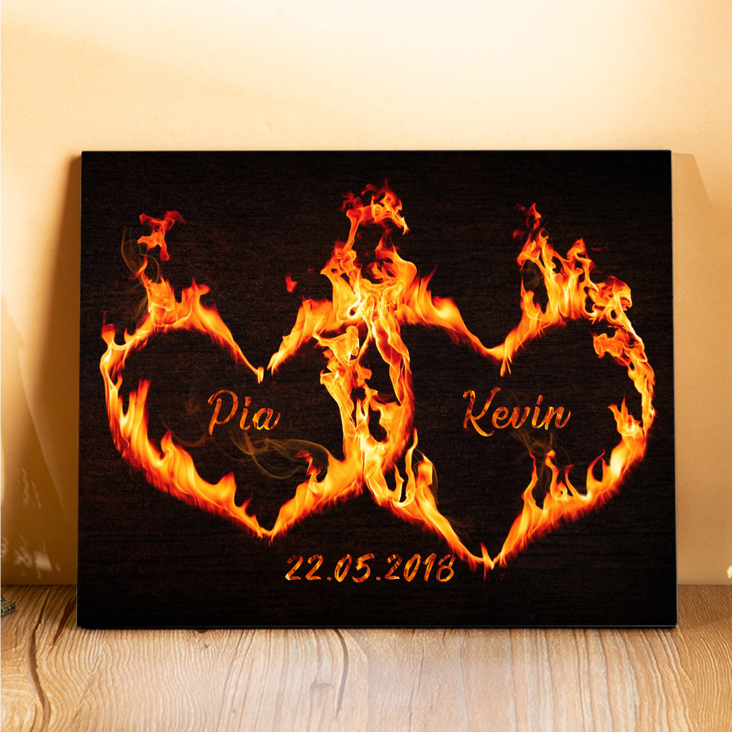 2 Names-Personalized Couple Wooden Frame Custom Names and 1 Date Heart for Couple