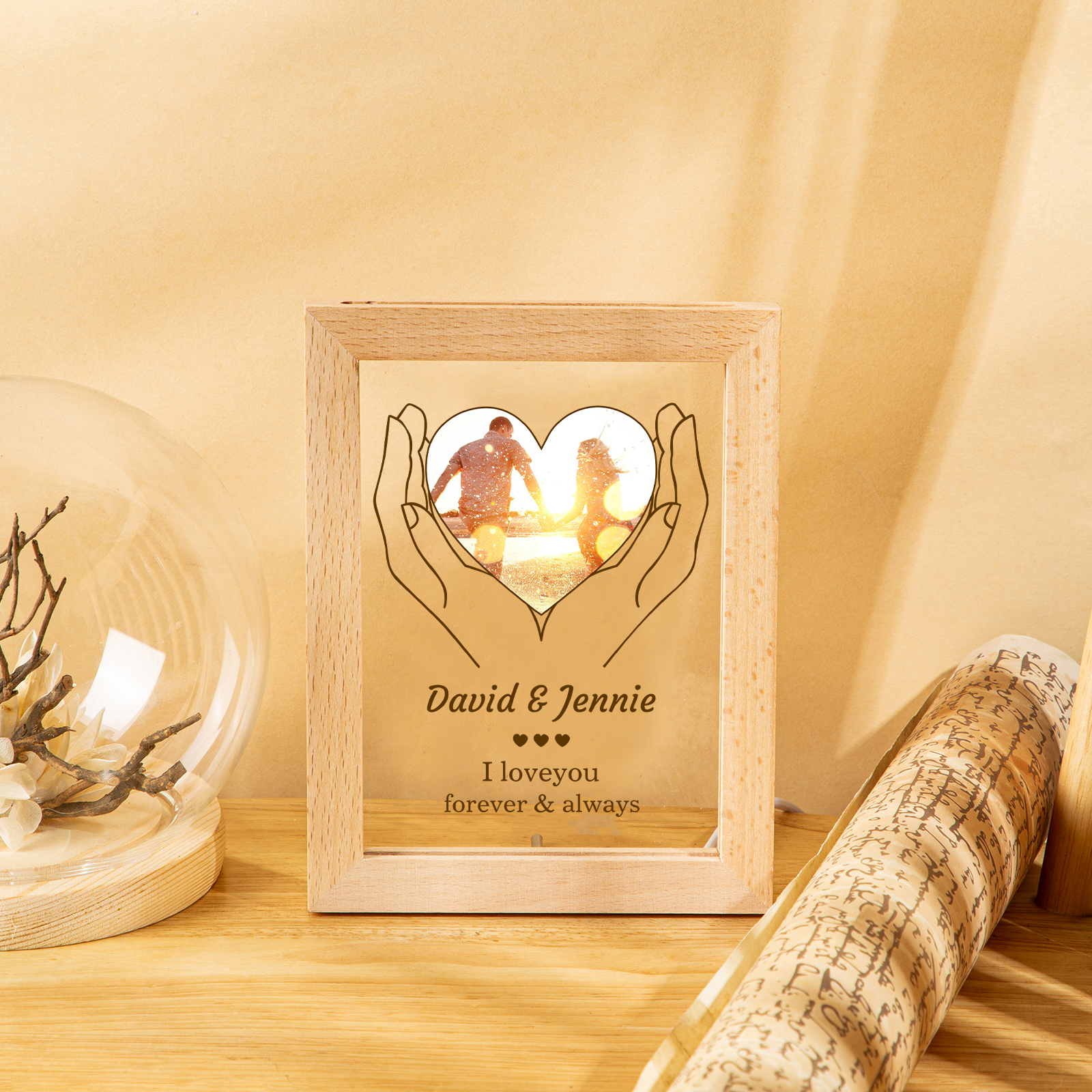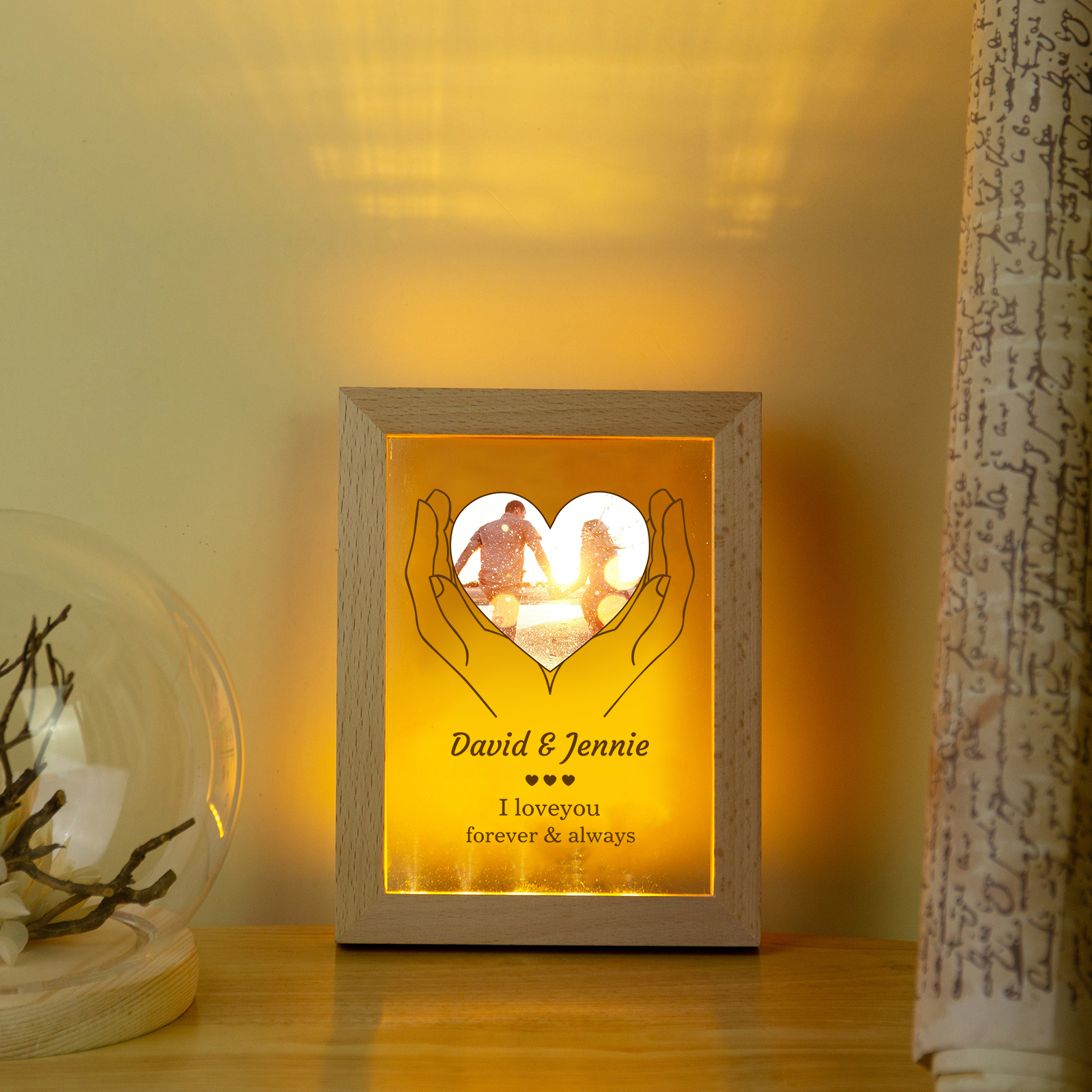 Personalized Wooden Hand-Holding Frame – Custom 2 Names & 1 Year, Couple Gift for Him/Her | Jessemade
