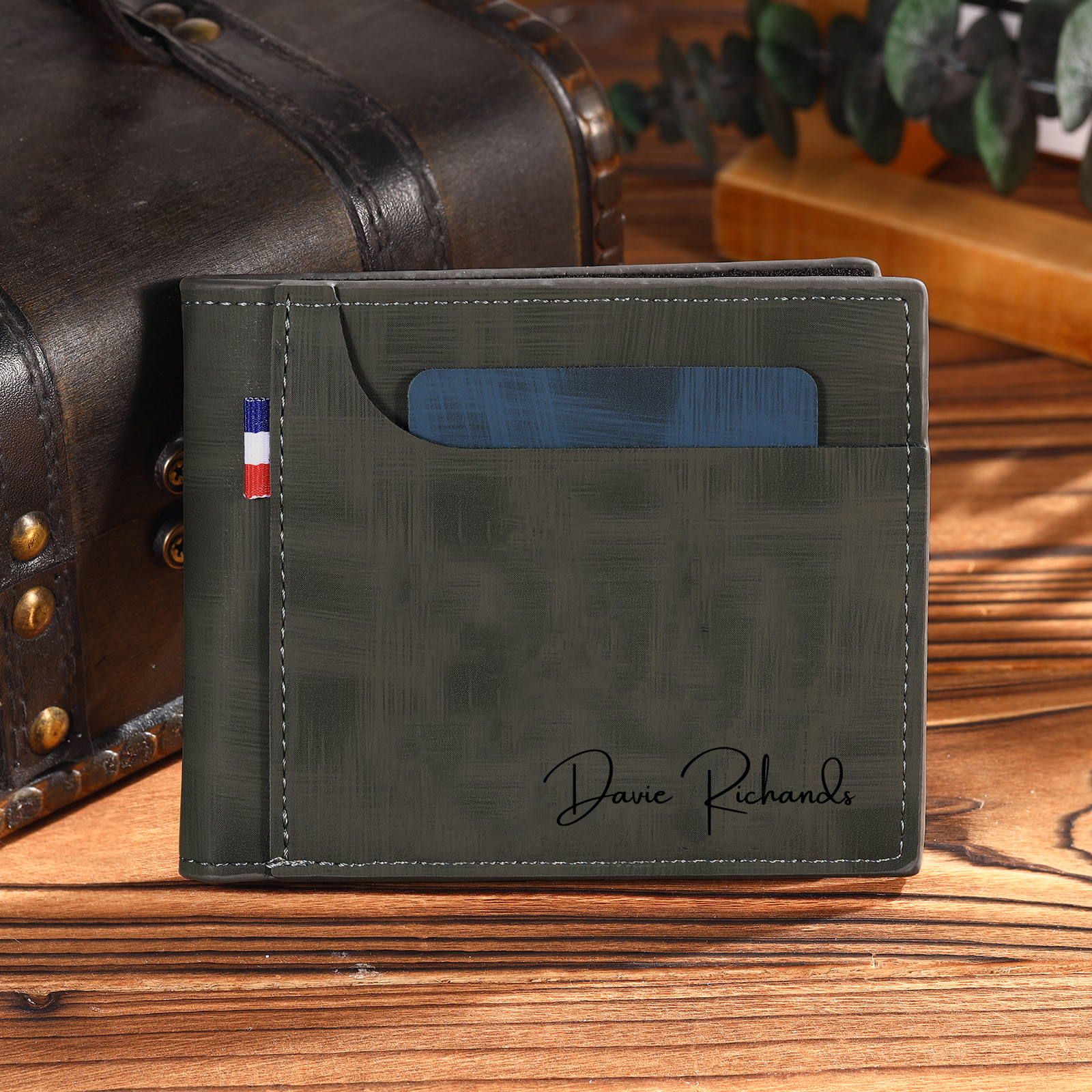 Personalized Men’s Wallet – Custom Photo & Text Couple Wallet with Blue Gift Box, Perfect Gift for Him | Jessemade