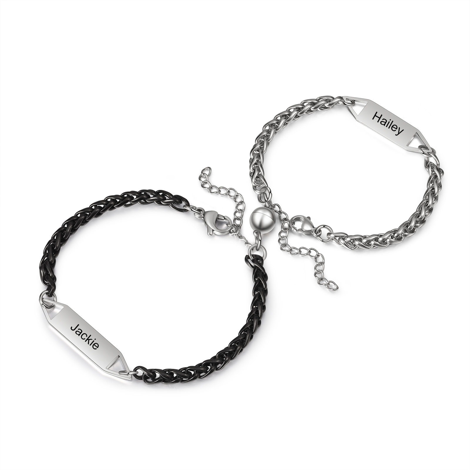 Personalized Matching Braided Couple Bracelets Custom Names Magnetic Bracelets Gift