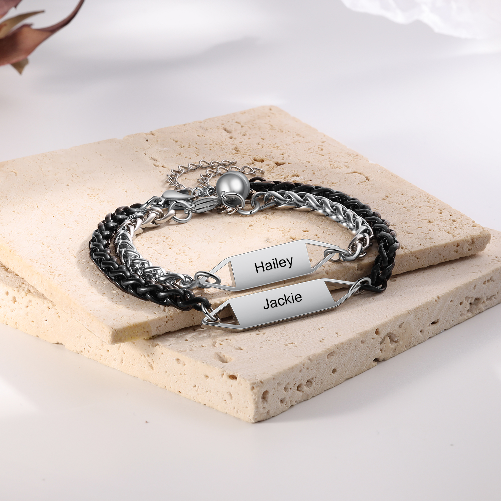 Couple's Bracelet Custom Names Engraved Stainless Steel Bracelet Personalized Gift for Him/Her