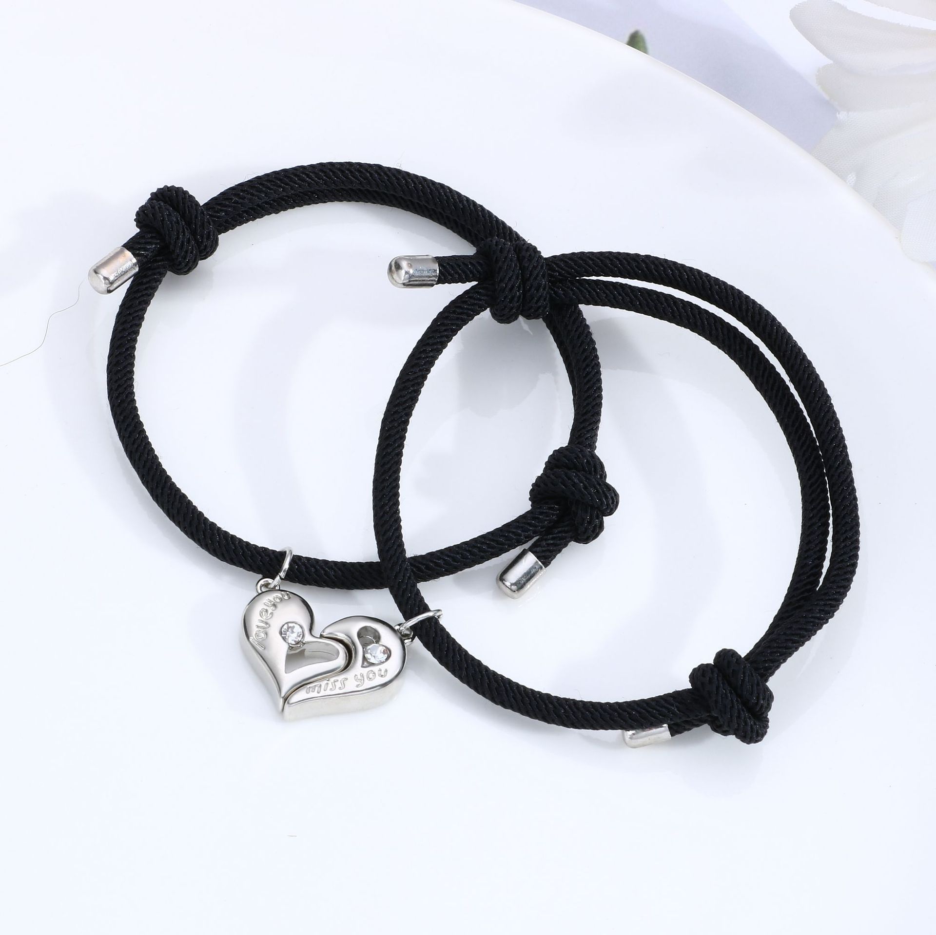 2PCS Valentine's Day Gifts Magnetic Matching Braided Couple Bracelets for Couple