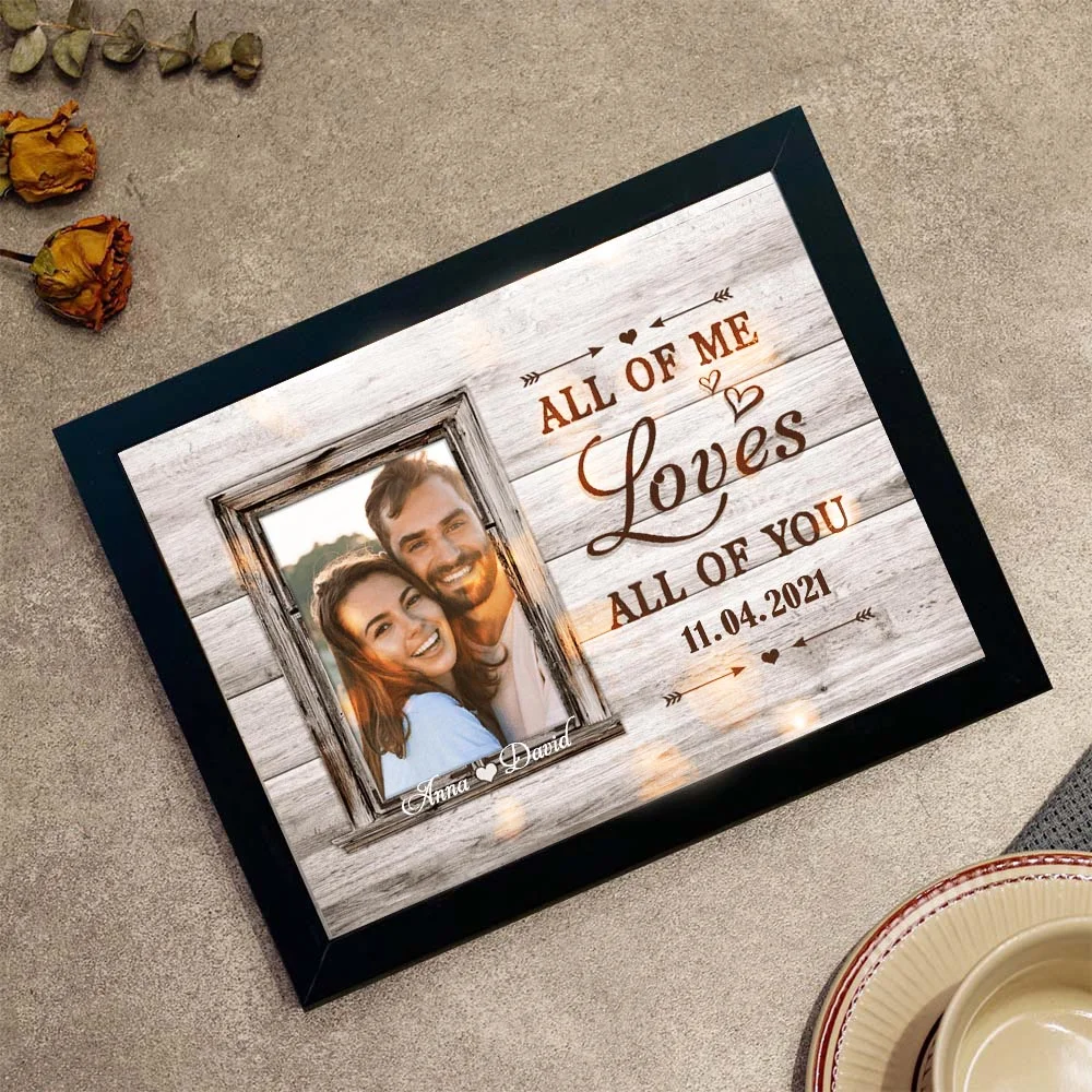 Personalized Photos Family Wooden LED Light Frame All of Me Loves All of You Custom Photos For Couple