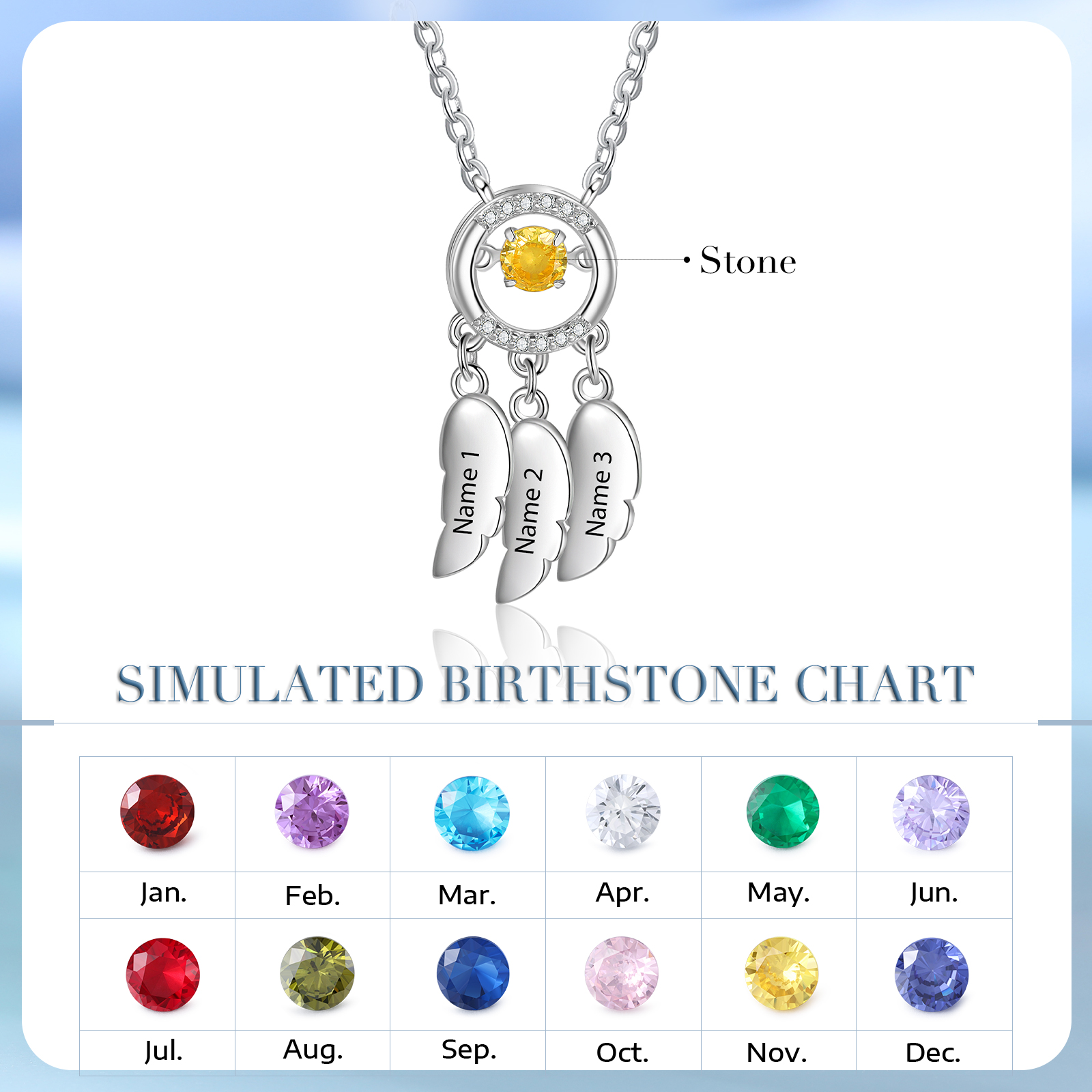 Personalized Dream Catcher Necklace With Birthstones Custom 3 Names Necklace Gifts For Her