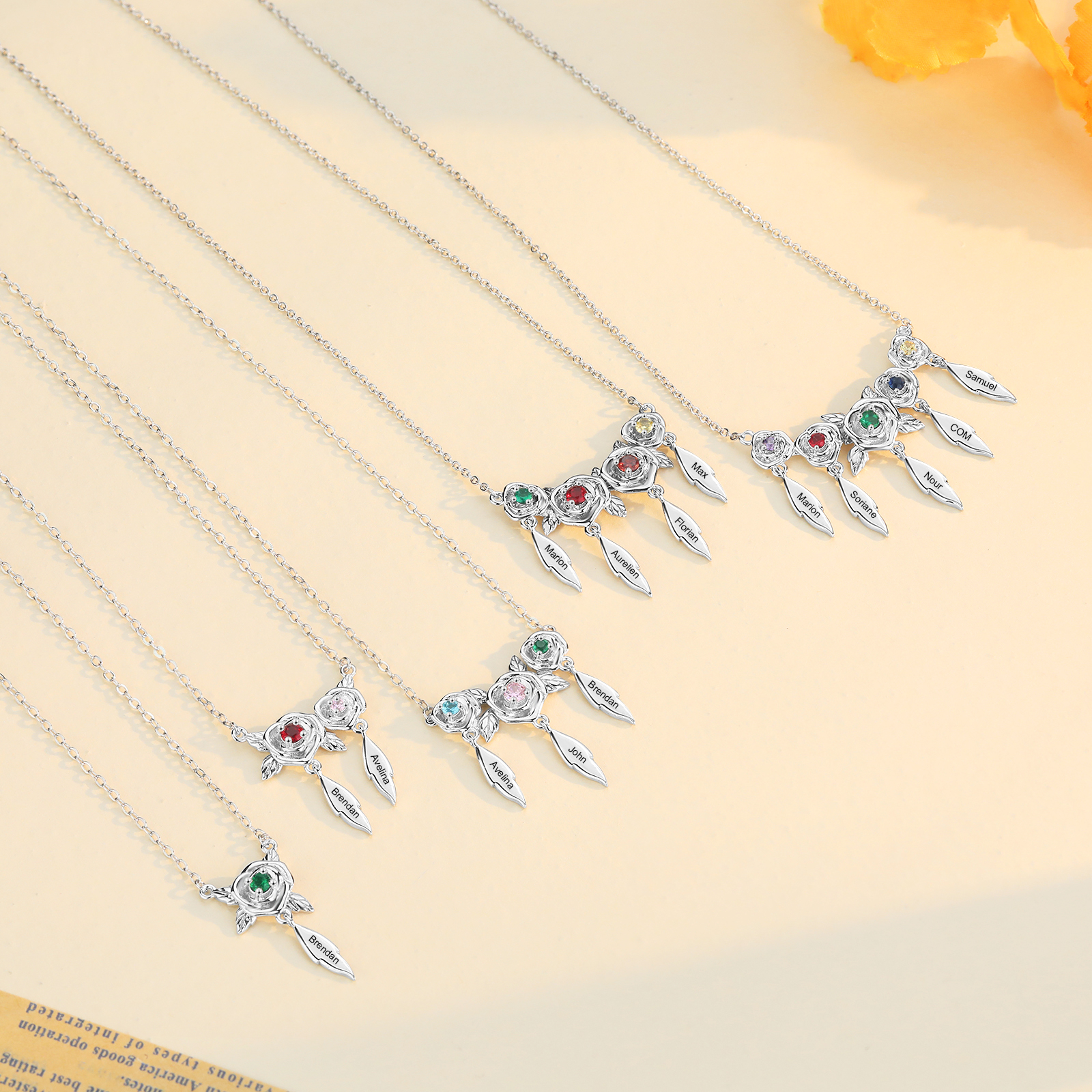 Personalized Dream Catcher Necklace With 5 Birthstones Engraved Names Gift For Women