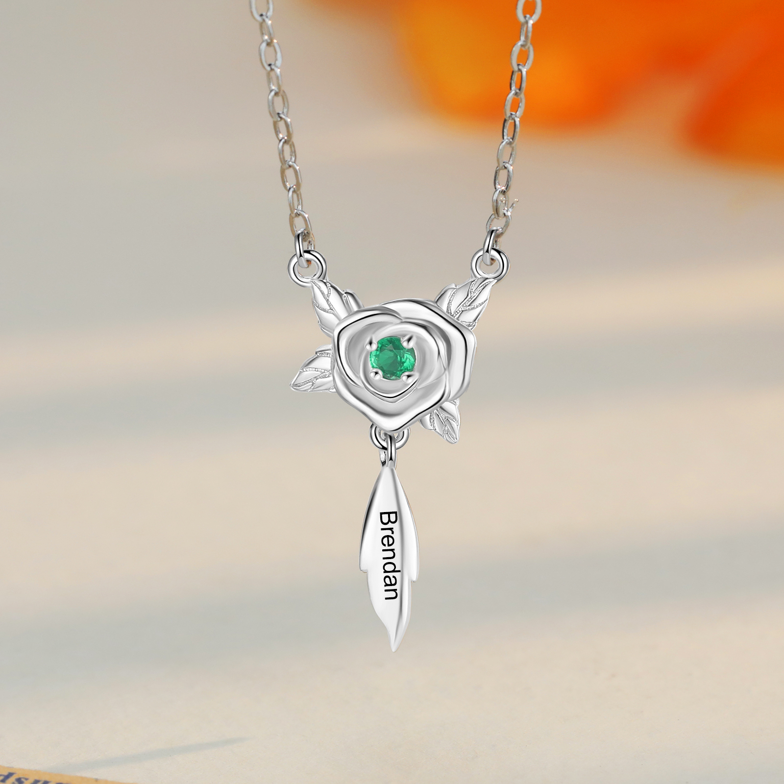 Personalized Dream Catcher Necklace Custom 1 Name Rose Flower Necklace