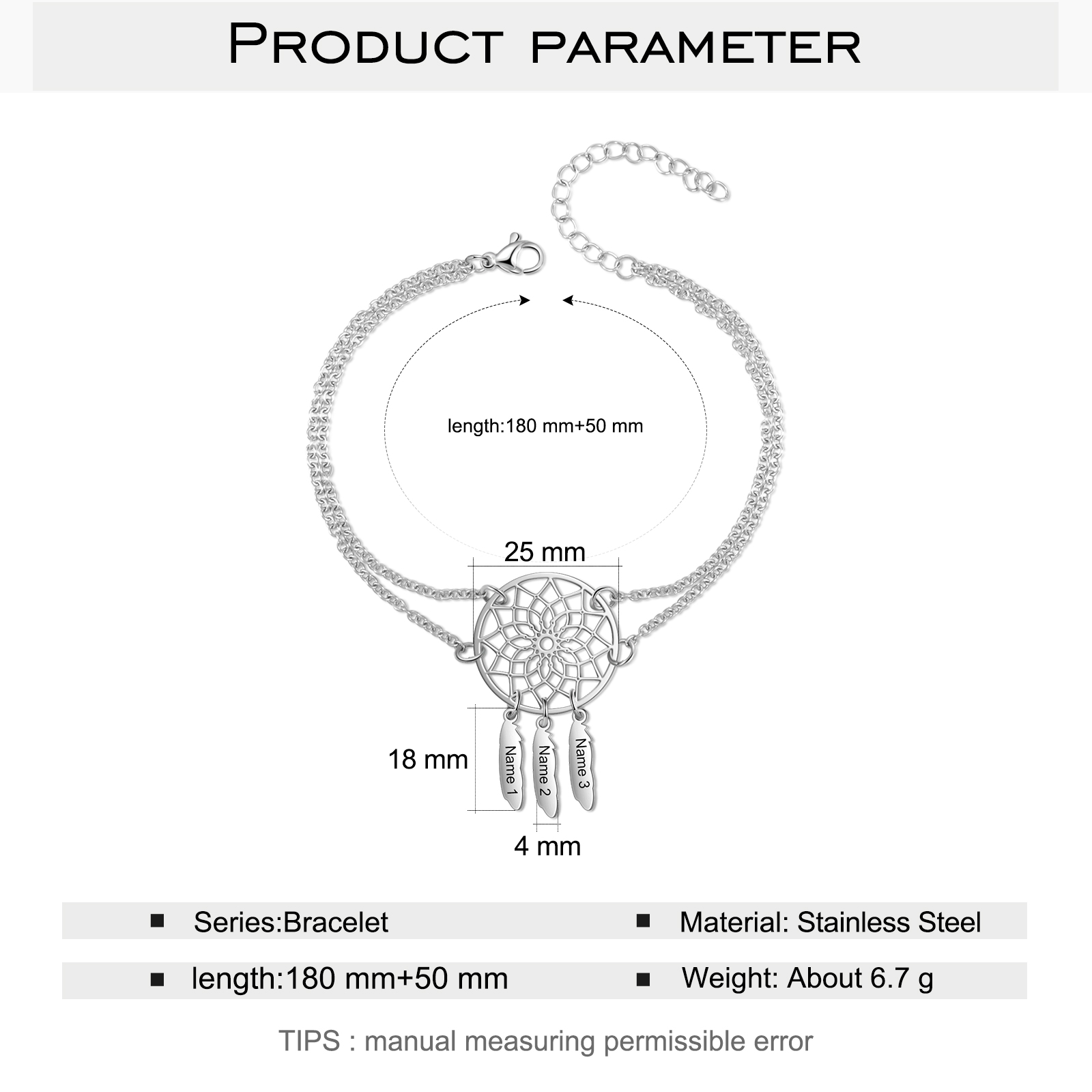 Personalized Dream Catcher 3 Names Bracelet For Ladies