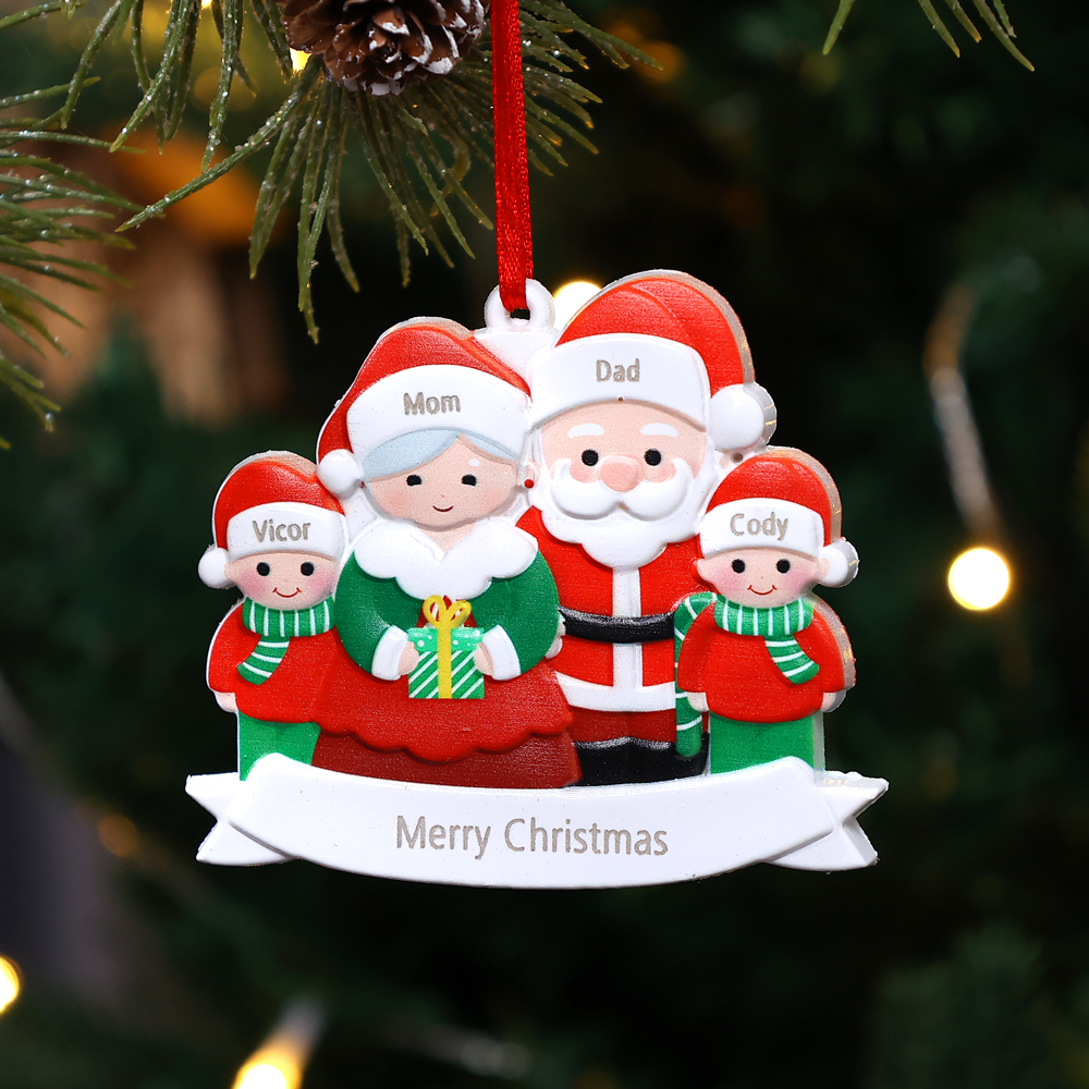 4 Names-Personalized Family Christmas Santa Claus Resin Ornament-Custom 4 Names Hanging Christmas Ornament Gifts For Family