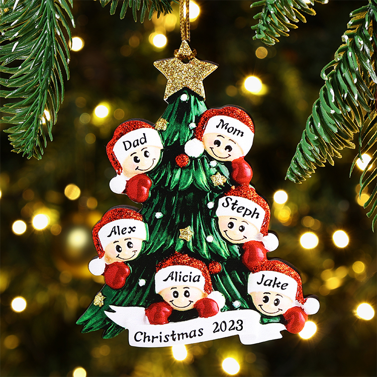 6 Names-Personalized Family Christmas Ornament Custom 6 Names Hanging Ornament Gifts For Family-Christmas Tree with Faces