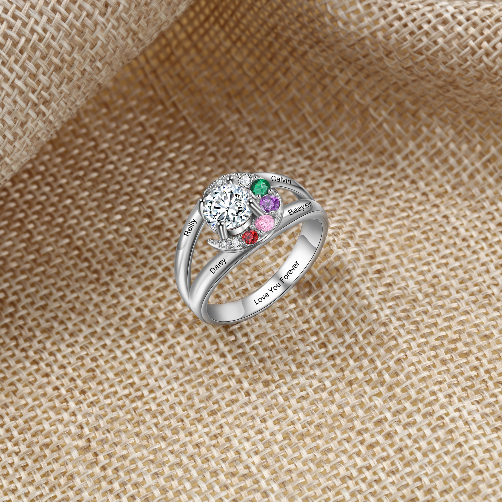 Family Ring Promise Ring Personalized 2 Birthstones Ring With Names Gifts for Her