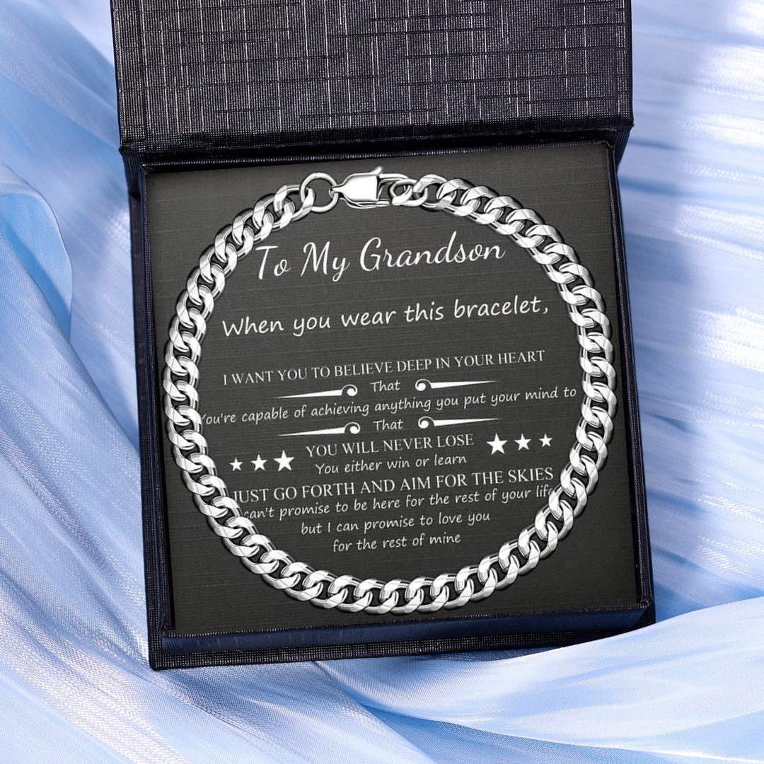 To My Grandson Believe Deep In Your Heart Cuban Chain Bracelet Birthday Gift Set With Gift Card Gift Box