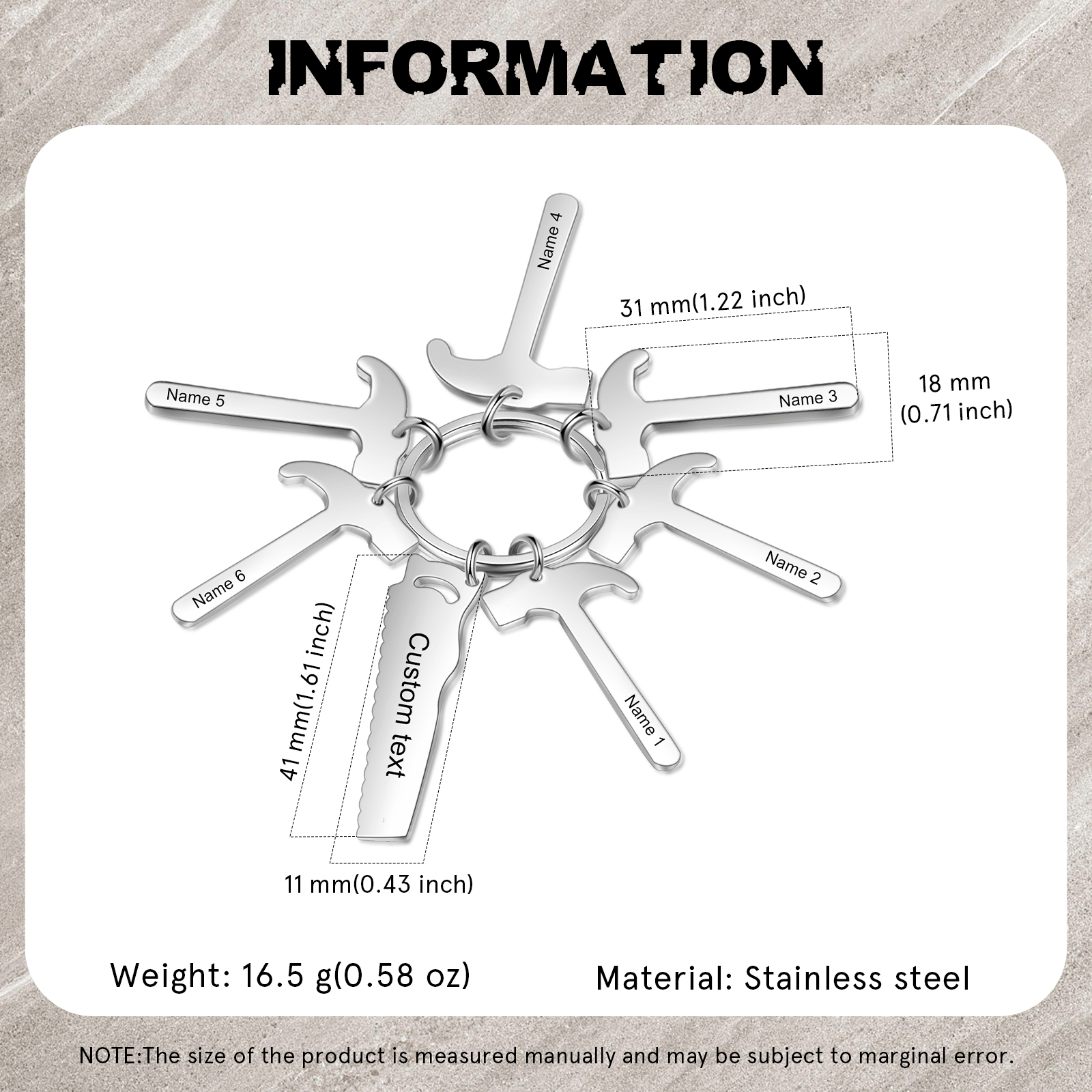Father's Day Gifts Tool Keychain Personalized 6 Names Stainless Steel Keyring For Him