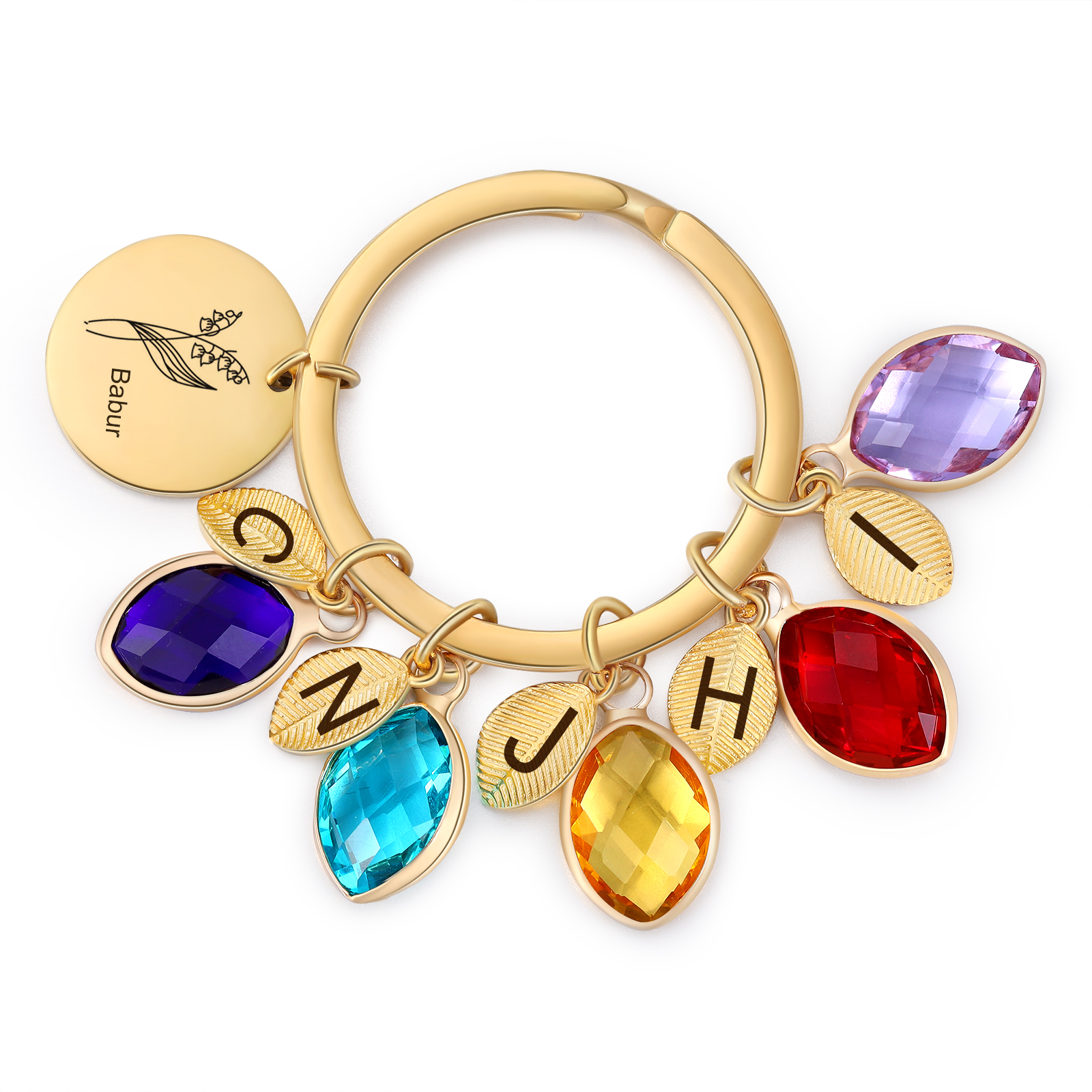 Birthday Flower Personalized Pendant Design 5 Letters and Birthstone Keychain Mom Hook Engraving Special Gift for Mom
