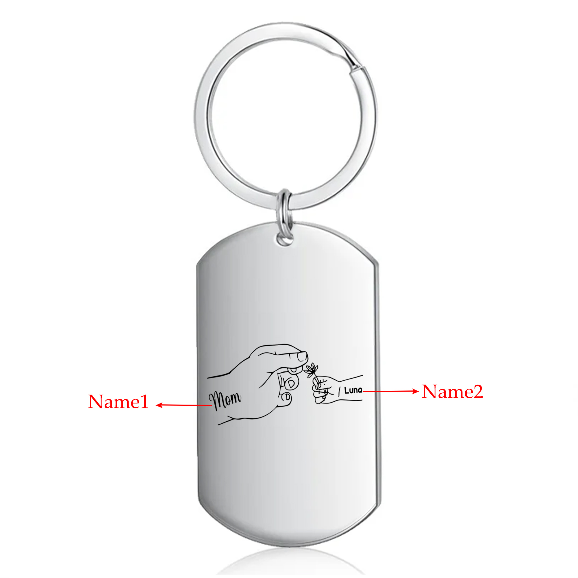 2 Names Personalized Mom Charm Keychain Hooking Engrave Name Special Gift For Mom