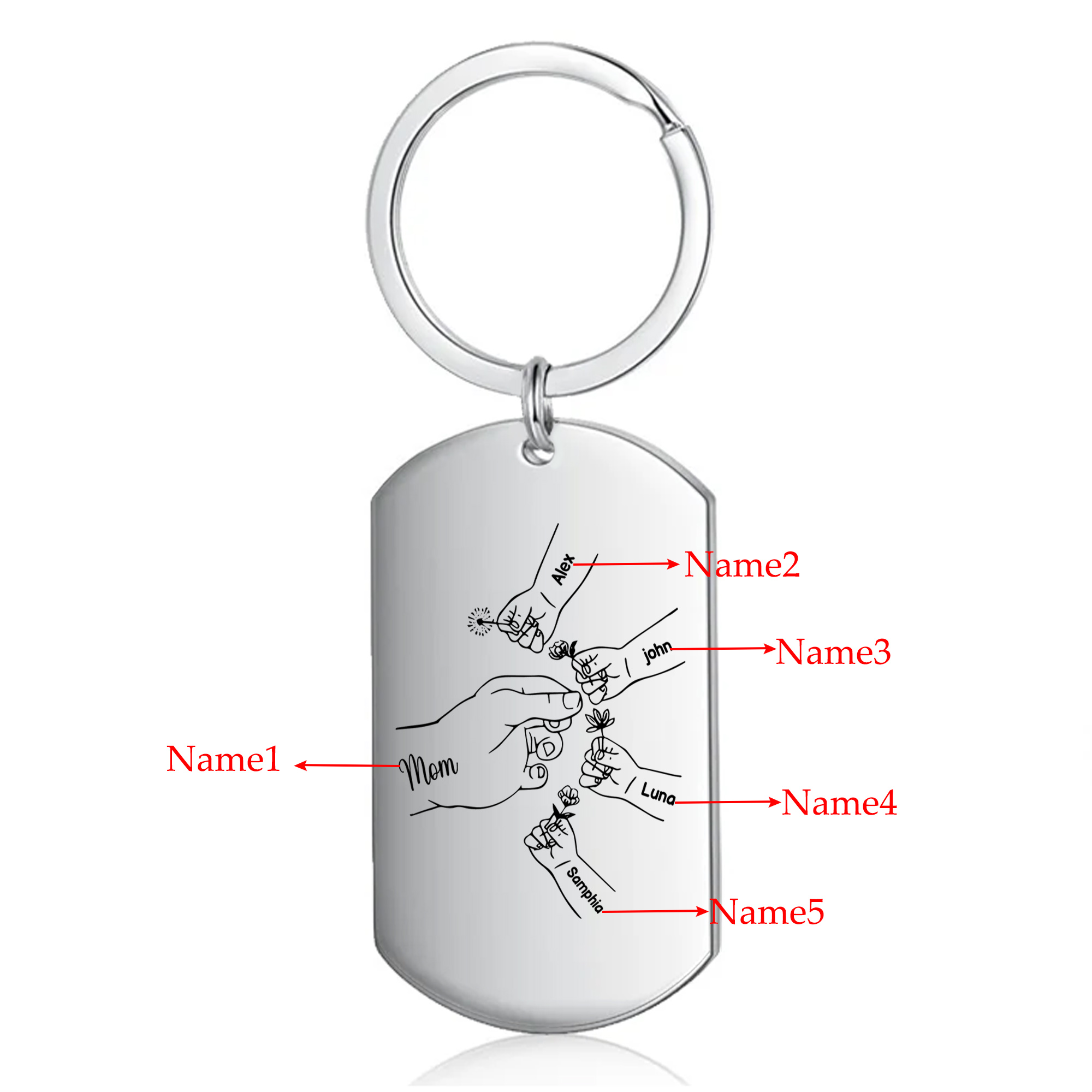 5 Names Personalized Charm Love Design Keychain Mom Hook Engraved Text Special Gift for Mom