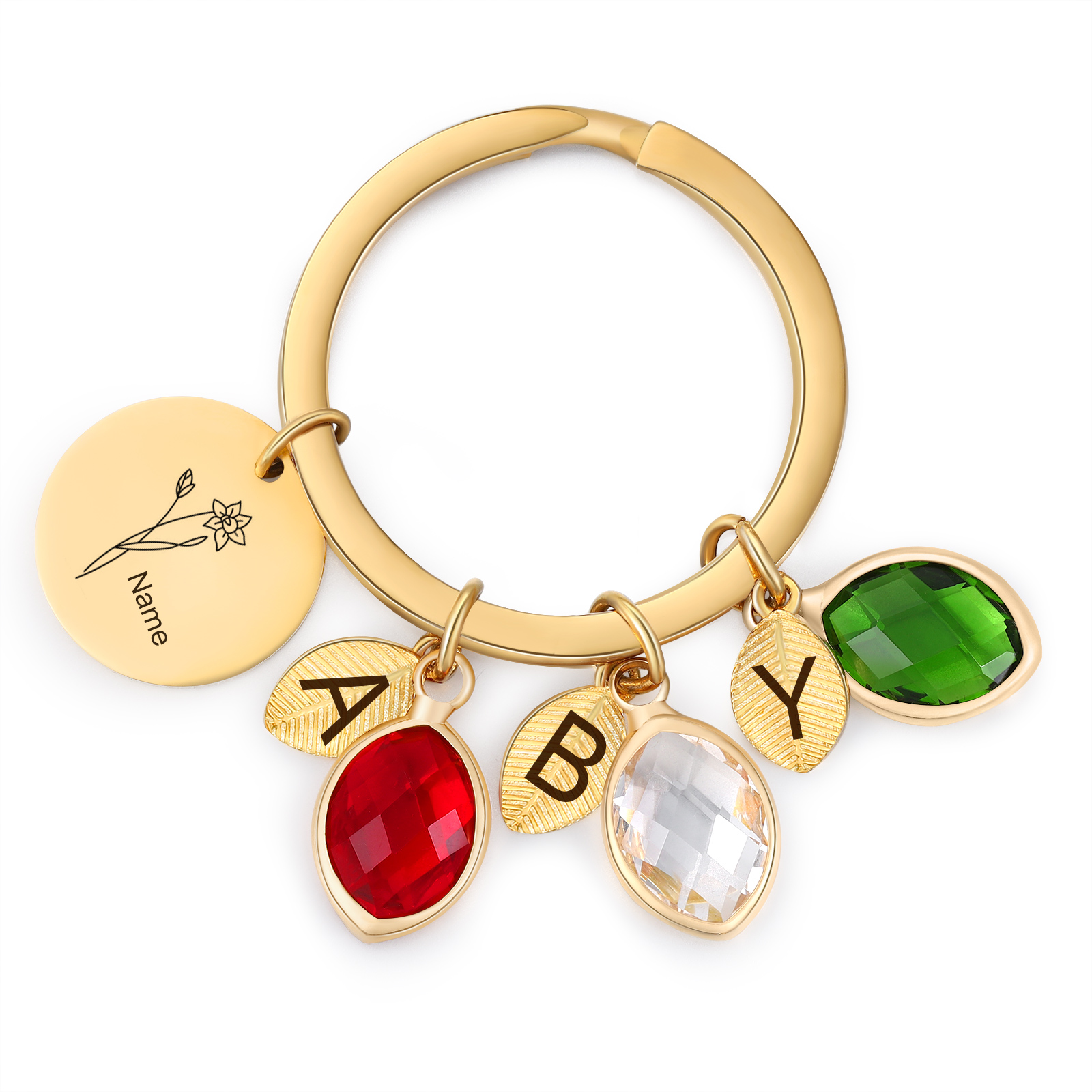 Birthday Flower Personalized Pendant Design 3 Letters and Birthstone Keychain Mom Hook Engraving Special Gift for Mom