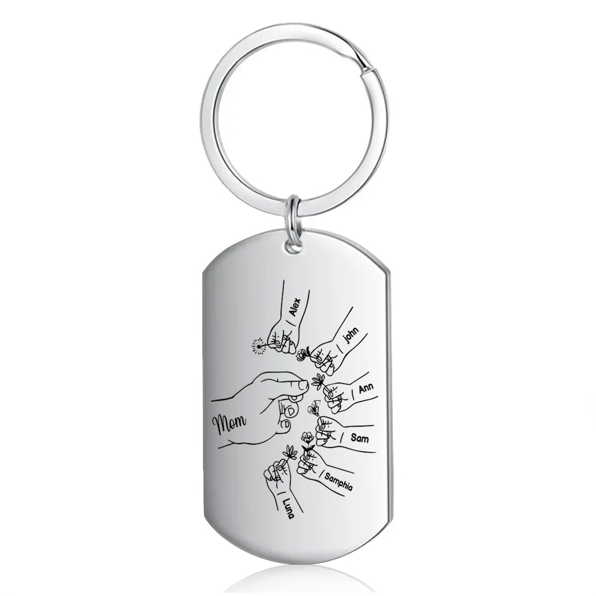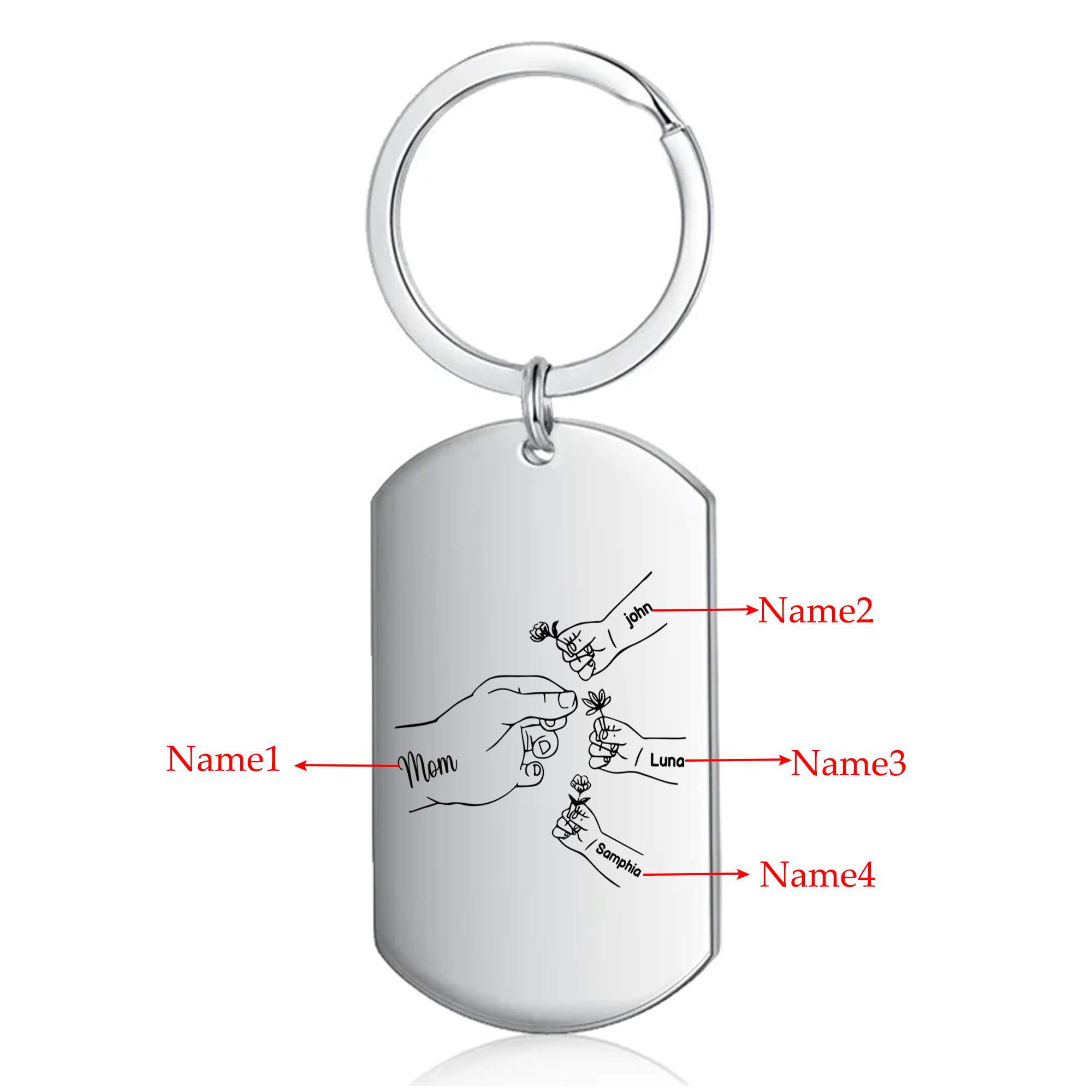 4 Names Personalized Mom Charm Keychain Hooking Engrave Name Special Gift For Mom