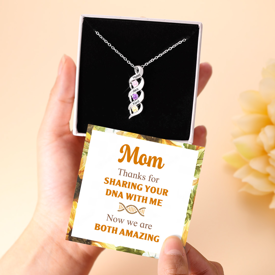 Mother DNA Necklace Personalized Family Necklace Engrave 2 Names & Birthstones Gifts For Her