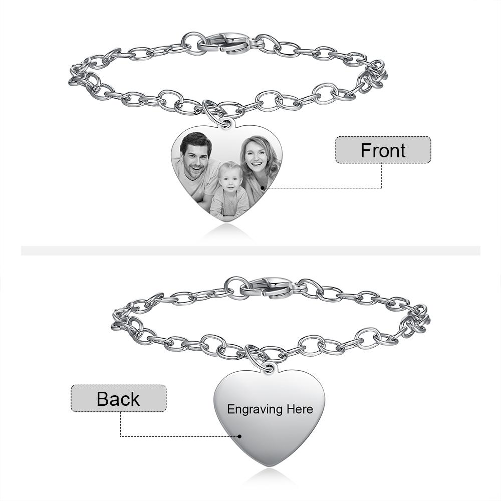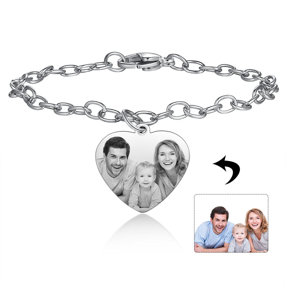 Personalized Heart Photo Locket Bracelet Custom Photo Bracelet Gifts For Her