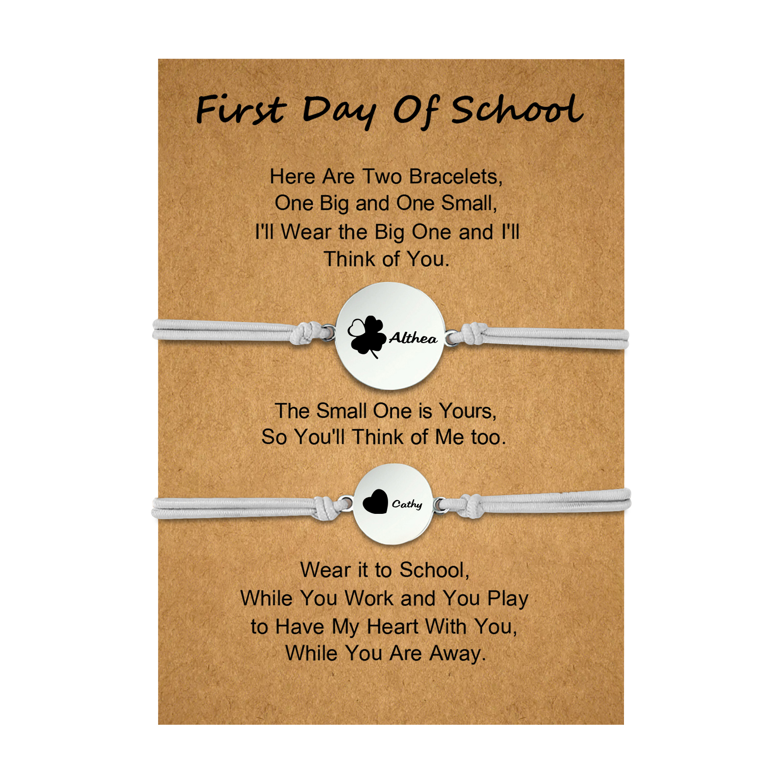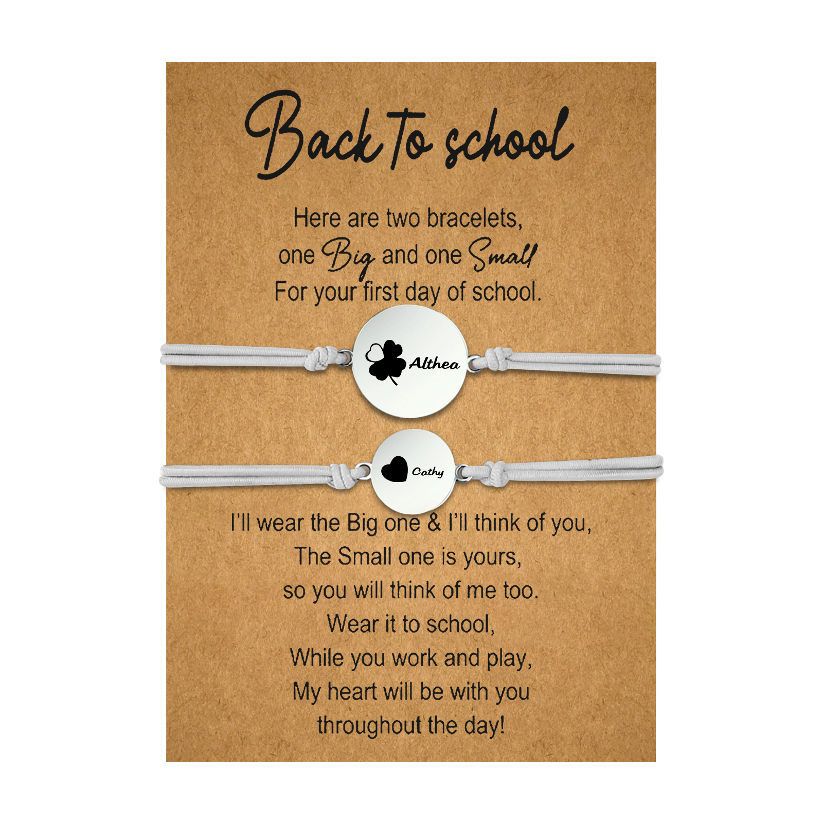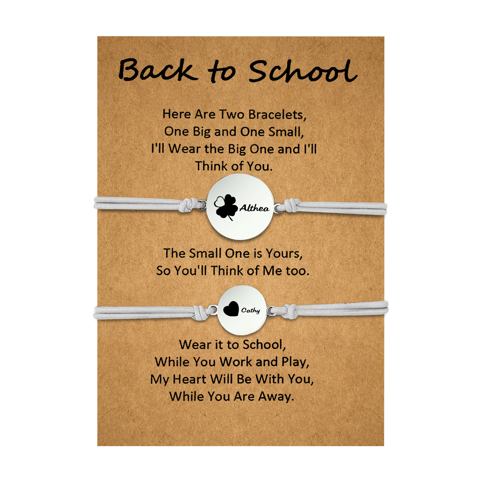 2-PCS Personalized 2 Names Elastic Cord Heart Bracelet, Back To School Gift For Daughter