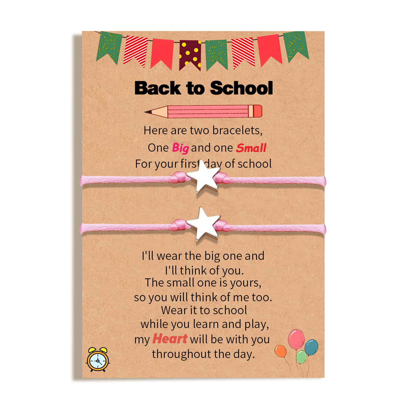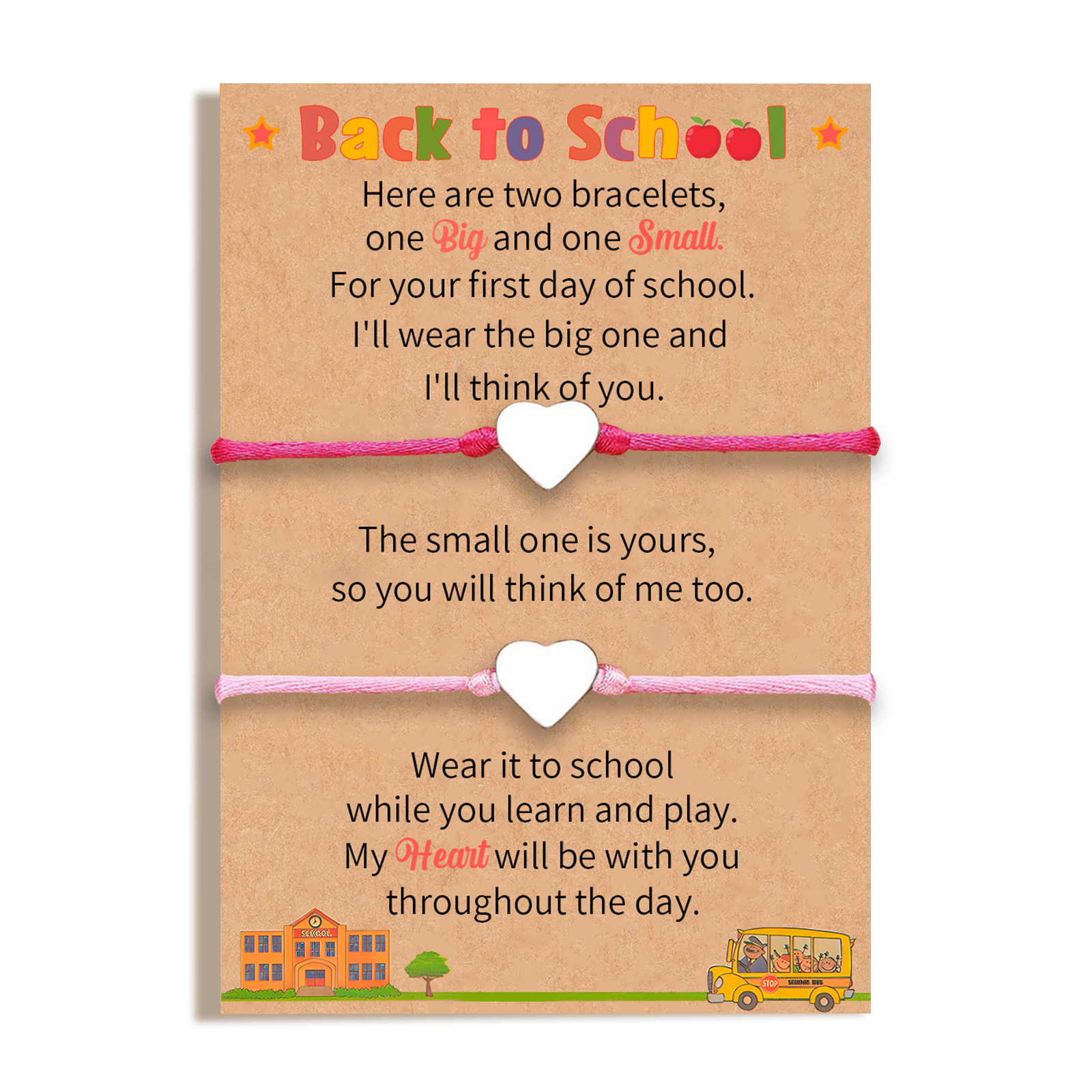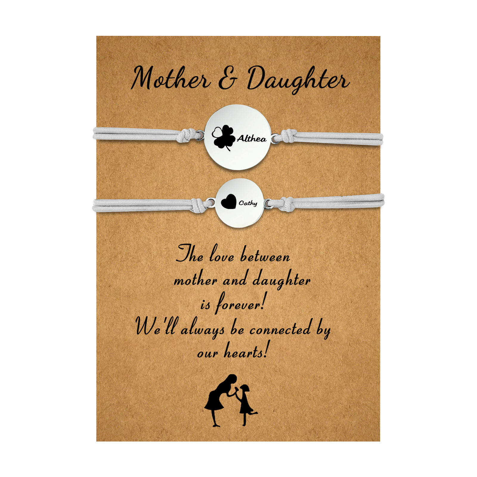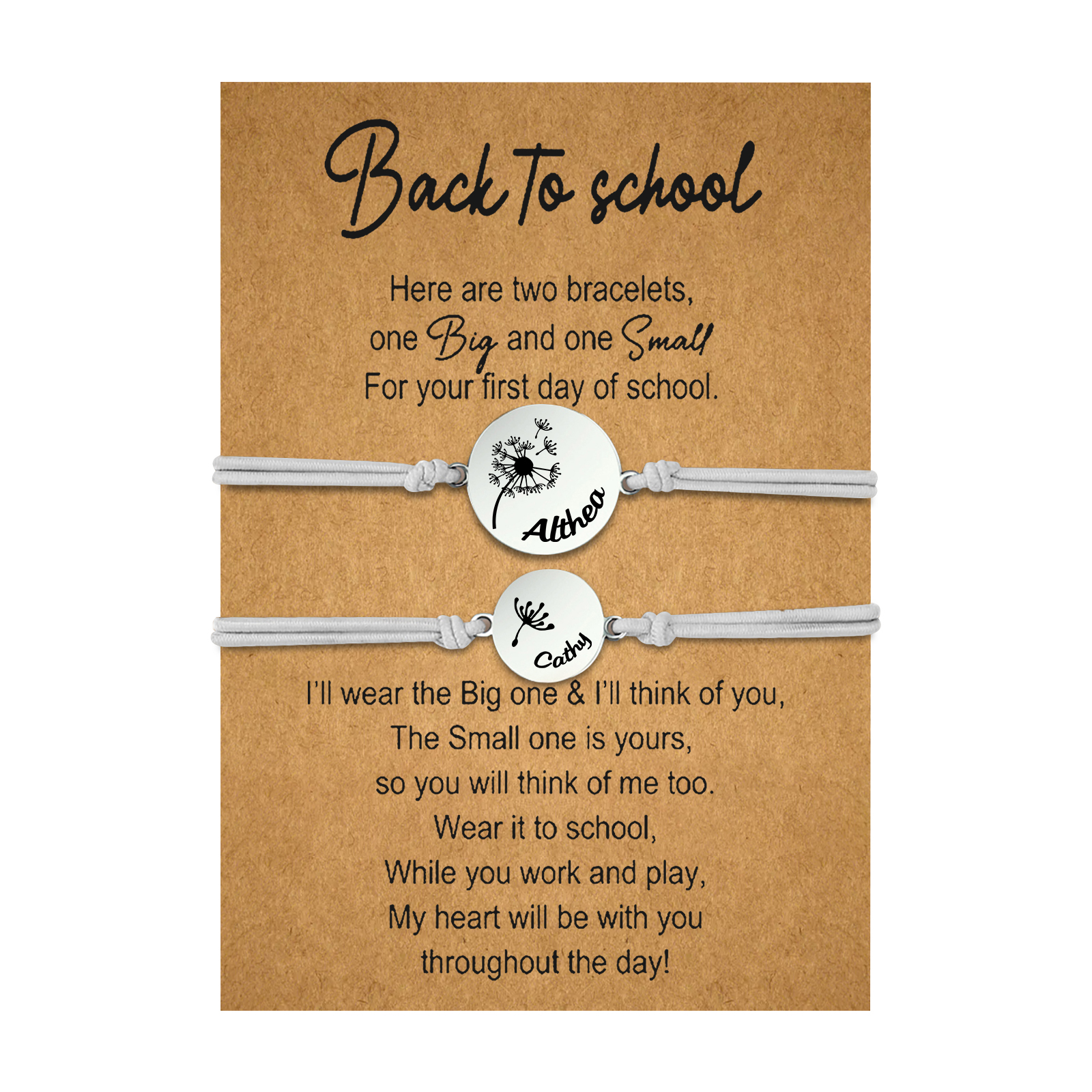 2-PCS Personalized 2 Names Elastic Cord Heart Bracelet, Back To School Gift For Daughter