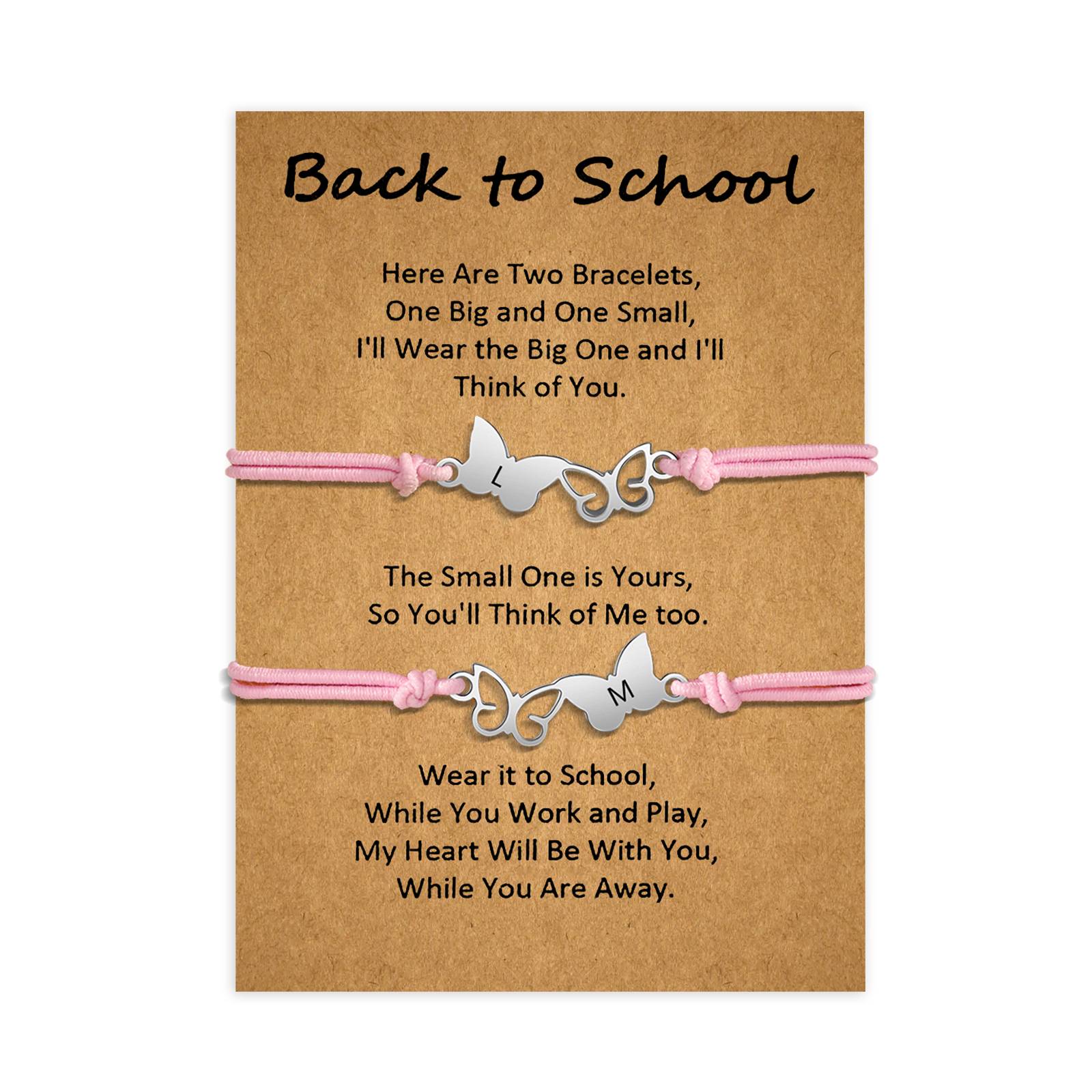 2 PCS- Personalized 2 Name Butterfly Braided Beaded Handmade Bracelet With Gift Box Card, A Back-To-School Gift For Daughter