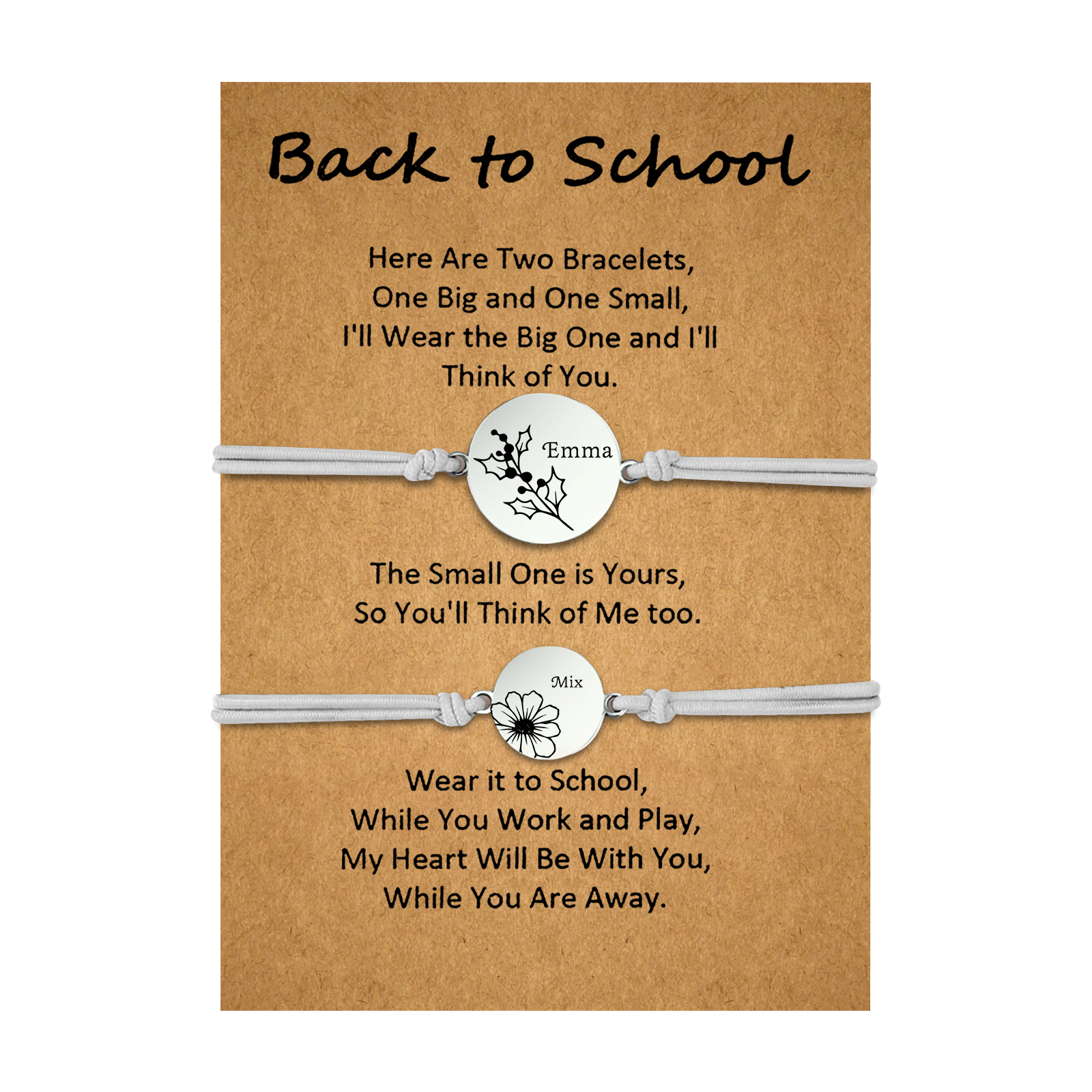 2 PCS Personalized 2 Birthflowers & 2 Names Elastic Stainless Steel Bracelet Back to School Gift for Daughter