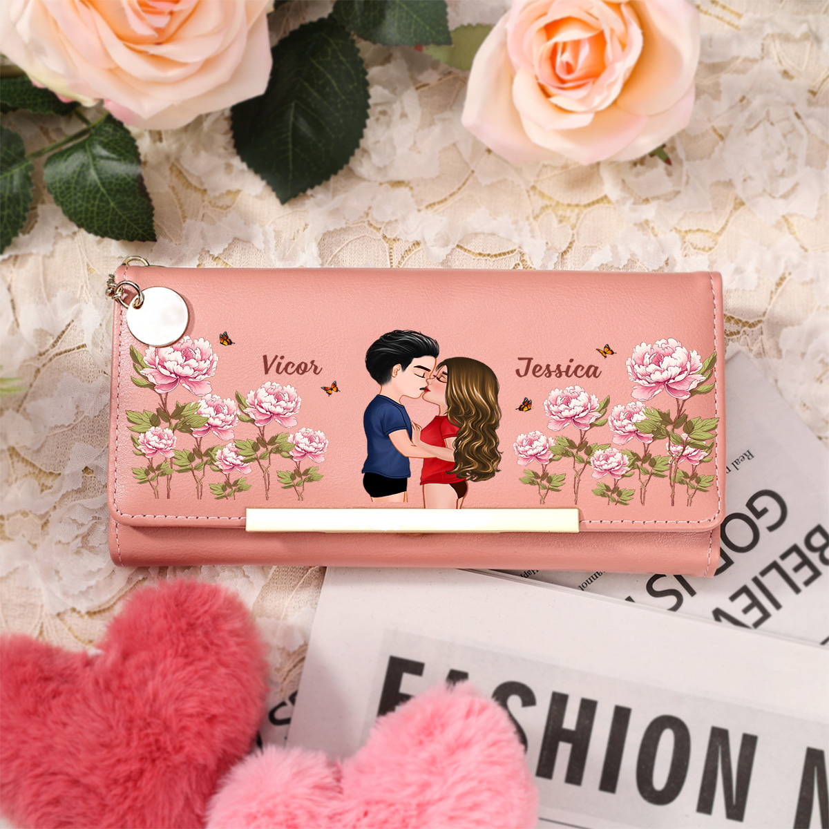 Personalized Couples Floral Purse Printed PU Wallet for Women