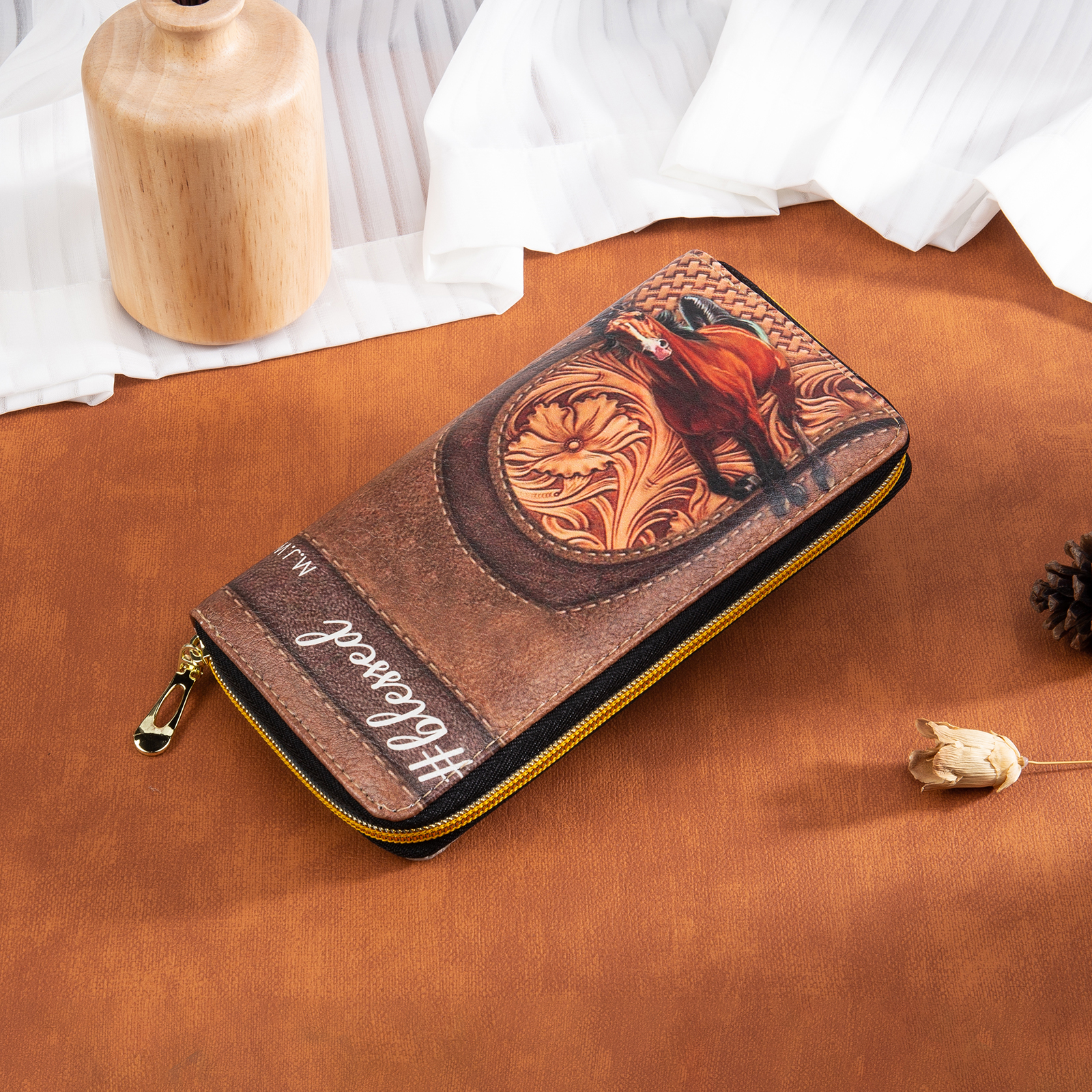 Long Purse Personalized Horse Leather Wallet Engraved 1 Photo Zip Wallet Gifts for Her