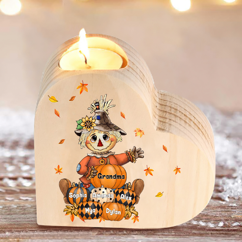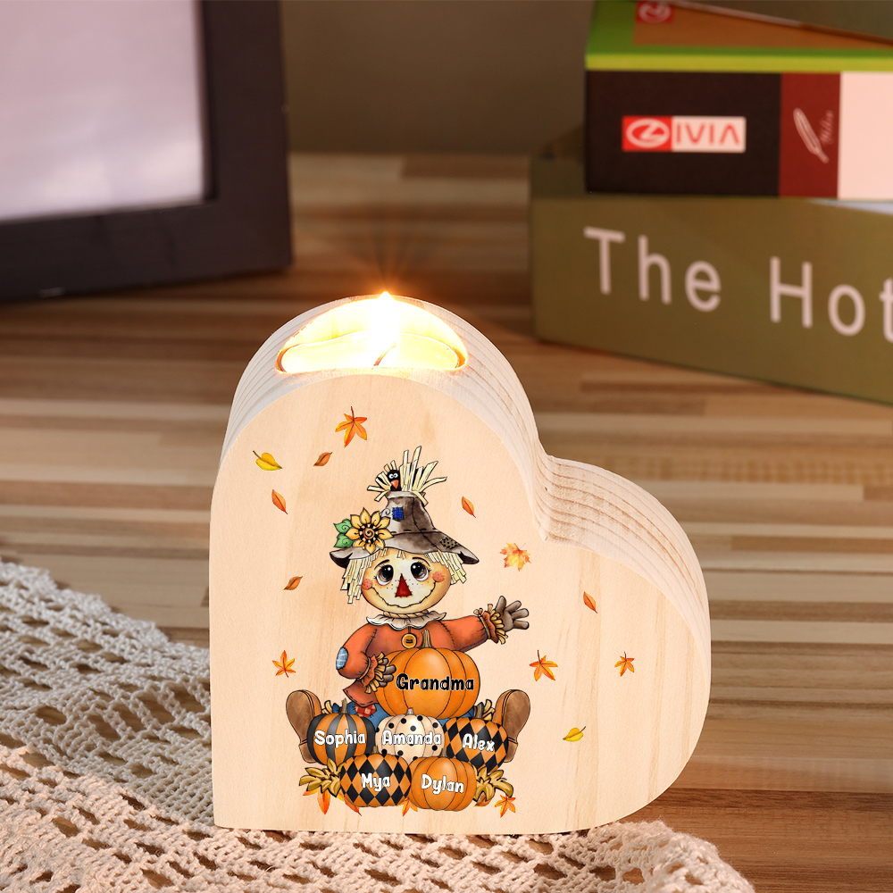 9 Names-Custom Halloween Wooden Candlestick-Personalized Names Pumpkin Heart Candle Holder Halloween Gift for Family