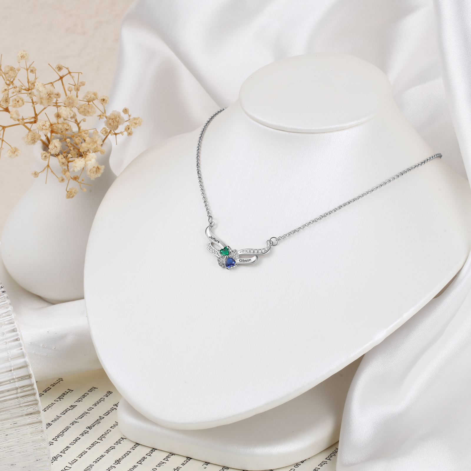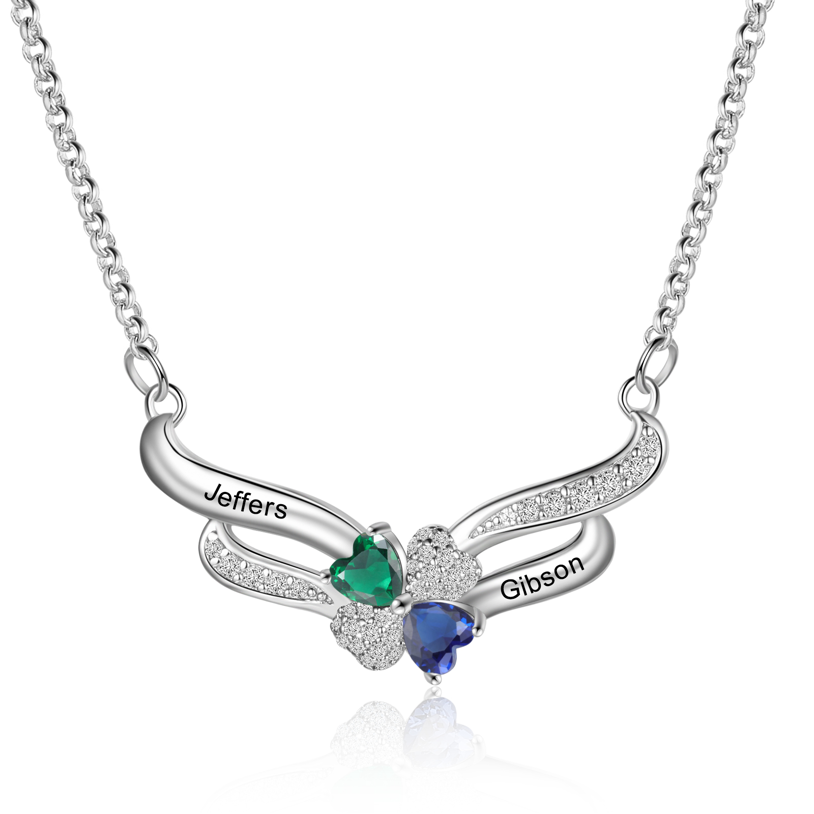 Personalized Heart Wings Necklace With 2 Birthstones Custom Names Gift For Her