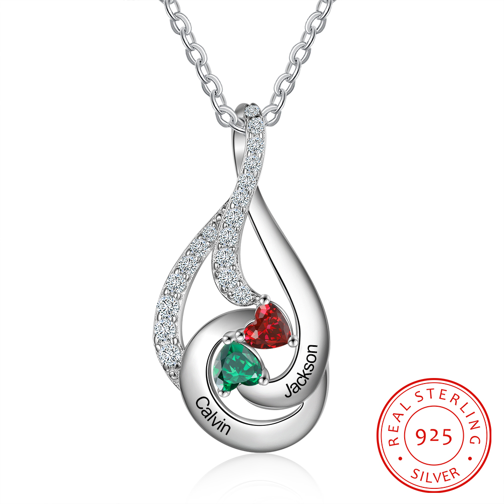 Personalized Water Droplet Necklace With 2 Birthstones Engraved Names Necklace Gift Foe Her