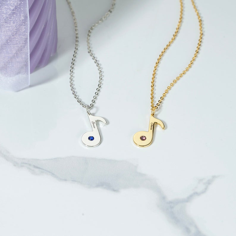 Personalized Musical Note Necklace With Birthstone Custom Names Gift For Her