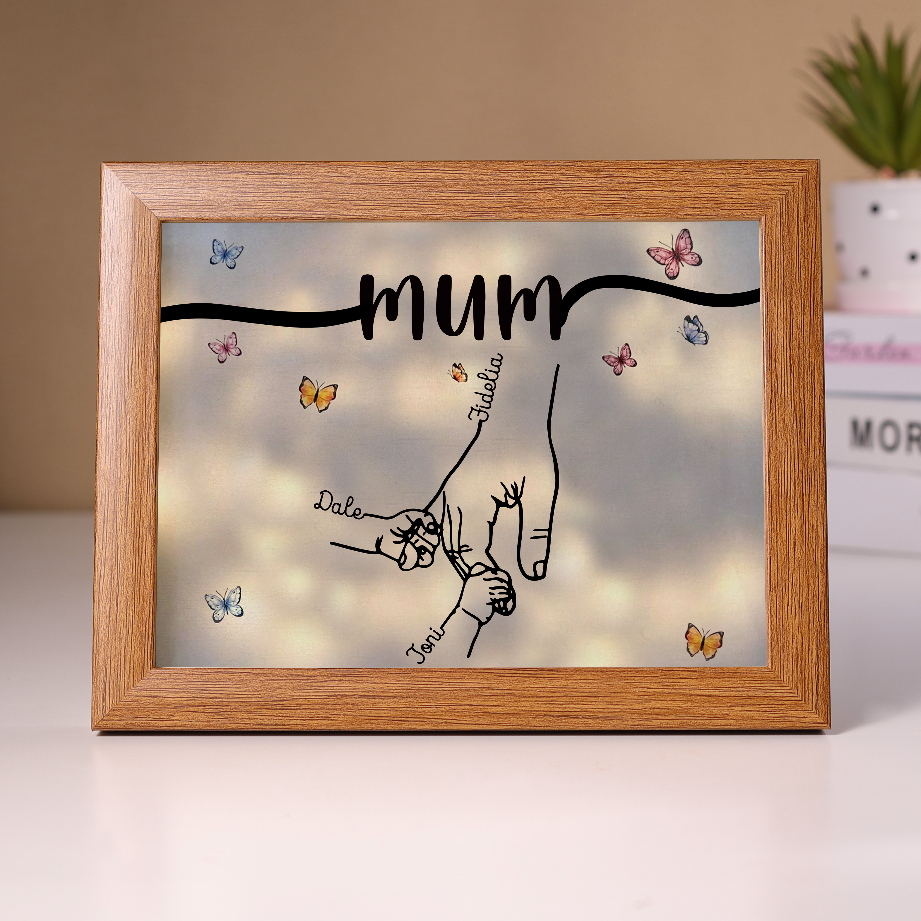 7 Names-Personalized Mum Family Hooking Hands Frame Custom Text LED Night Light Gift For Mum